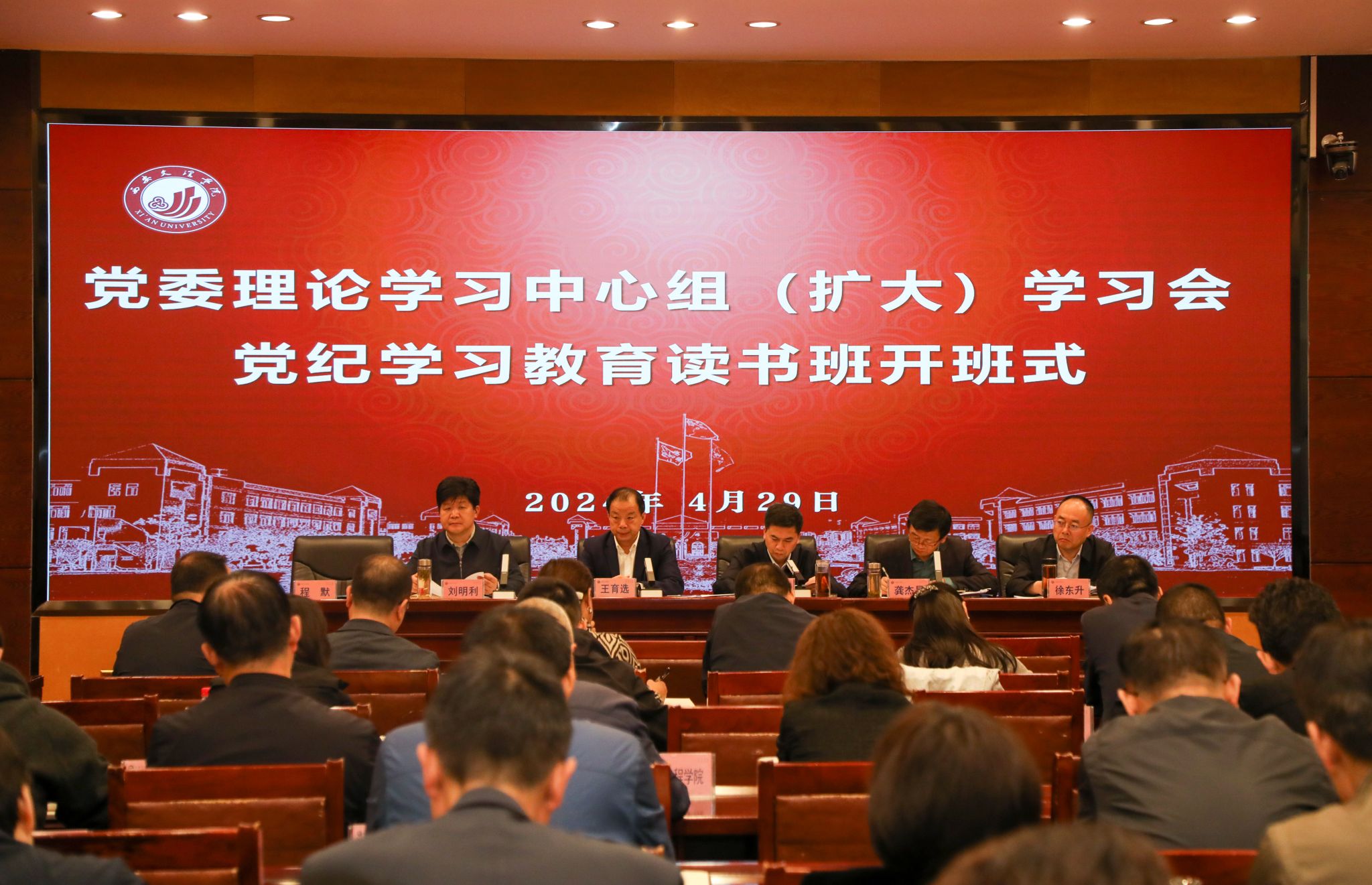 4月29日上午,学校举行党纪学习教育读书班开班式暨党委理论学习中心组(扩大)学习会,深入学习贯彻习近平总书记关于党纪学习教育的重要讲话和重要指示精神,带动全校党纪学习教育走深走实。校党委书记王育选主持会议并讲话。王育选指出,在全党开展党纪学习教育,是以习近平同志为核心的党中央作出的重大决策,是加强党的纪律建设、推动全面从严治党向纵深发展的重要举措,充分彰显了我们党推进自我革命的坚定决心和坚强意志。要持续深入学习领会习近平总书记关于党的建设的重要思想、...