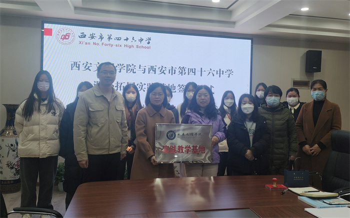 11月28日上午,化学工程学院副院长宋瑞娟和教育实习指导老师张纹一行赴西安市第四十六中学校举行实习基地签约授牌仪式。四十六中学校副校长李颖,教导处主任孔令楠以及实习指导老师和实习学生参与了签约挂牌仪式。 ...