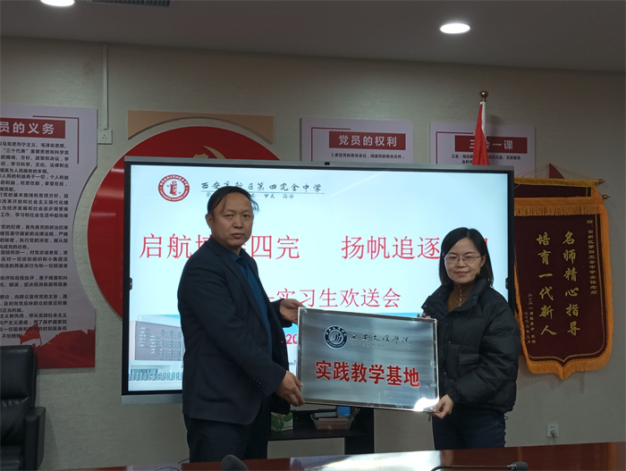 12月1日下午三点,化学工程学院教学副院长宋瑞娟、学生工作办公室副主任张莎和教育实习带队教师何亚萍一行三人赴西安市高新区第四完全中学参加实习生座谈及实践教学基地授牌活动。西安市高新区第四完全中学总务处主任...