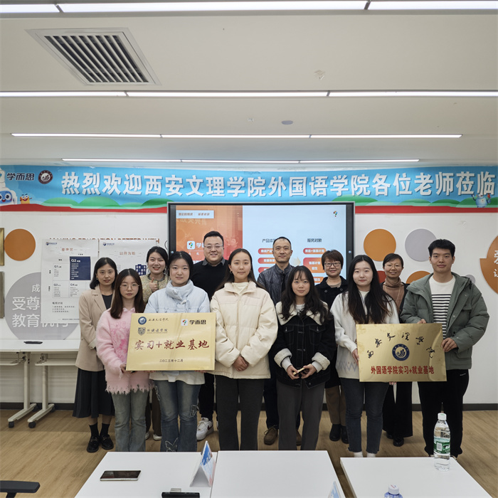 12月7日下午,外国语学院党总支书记王一、党总支副书记李巧玲、英语系副主任薛维及4名在校学生一行7人赴学而思培训中心开展实习+就业校企合作专项活动。学而思西安基地负责人丁嘉艺、人力资源负责人刘倩、辅导基地负...