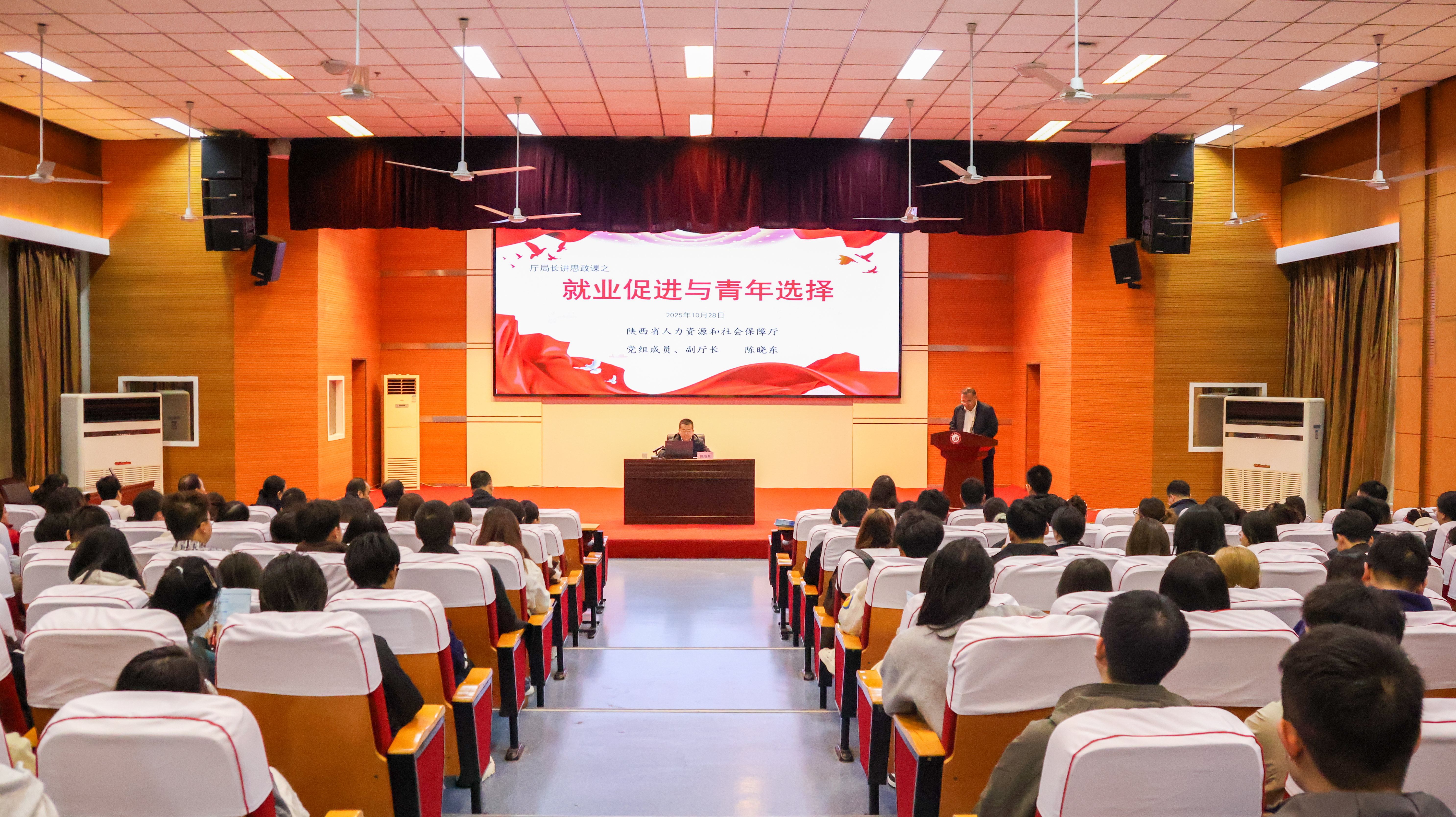 10月28日上午,陕西省人力资源与社会保障厅党组成员、副厅长陈晓东深入开云官网,为师生讲授思政课。陈晓东以《就业促进与青年选择》为题,从陕西省就业总体情况、高校毕业生就业形势、面对职场大学生该准备些什么三个方面,讲述了就业工作的使命任务、就业指标情况以及政府实施“一揽子”政策促进高校毕业生就业创业等内容,既有高屋建瓴的理论阐述,又有贴近实际的数据分析,让开云官网师生对当前的就业形势有了更加清晰的认识,对青年就业选择有了更加深刻的理解。...