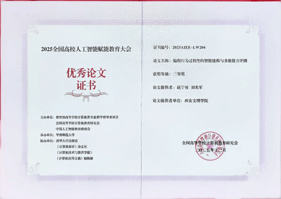 12月19日至21日,2025全国高校人工智能赋能教育大会在广州召开。大会由教育部高等学校计算机类专业教学指导委员会等权威机构主办,聚焦人工智能与教育深度融合。信息工程学院赵宁社博士团队提交的教研论文《编程行为过程性的智能建模与多维能力评测》荣获全国高等学校计算机教育研究会优秀论文二等奖。论文针对编程教学痛点,构建智能建模体系,通过多维能力评测模型,为编程个性化教学提供科学依据。此次获奖是学院教师在“AI+编程教学”...