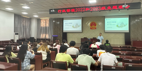 2024年9月19日,为了进一步增强行政管理专业同学的学习积极性和主动性,建设良好的学习氛围,行政管理专业2022和2023级召开了“建设学习型班级”主题班会。会议由王斌老师主持,杨光耀老师出席,行政管理2022和2023级同学和2021级优秀学生代表参加。