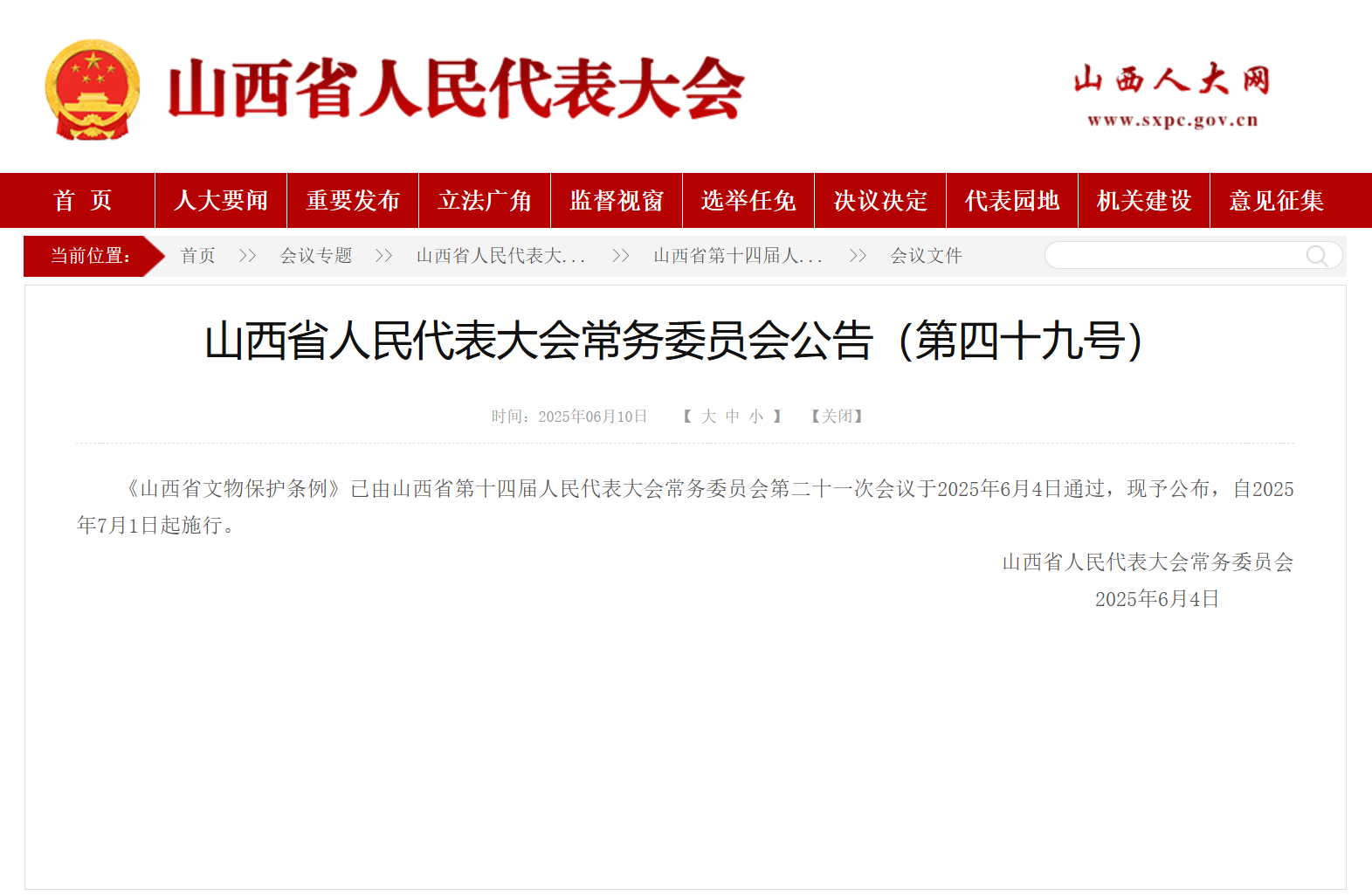 山西作为文物大省,文物资源丰富,文化底蕴厚重。山西省第十四届人民代表大会常务委员会第二十一次会议通过的《山西省文物保护条例》自2025年7月1日起施行,是全国新修订的文物保护法施行以来第一部省级地方性配套法规。在该条例草案向社会公开征求意见建议时,雷兰教授逐条逐项论证分析,提出了15条意见建议,经山西省人大常委会法制工作委员会认真研究后,对其中的1条意见予以完全采纳,即条例第五十三条第二款、第三款。这些意见对进一步完善法规有关文物保护经费的预算执行和经费使用情况的监督等方面的内容,提供了重要的参考价值。条例的出台,凸显了以法治之力守护“地上文物看山西”的金字招牌,也充分体现了今年会法学专业教师对推进文物保护与合理利用的“智囊”作用。