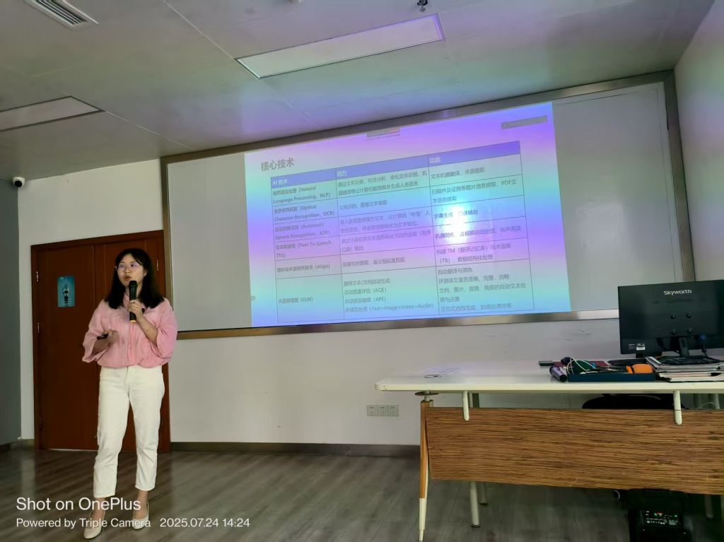 张芳老师参加2025创新实践教学与大模型技术应用培训班,深感AI与教育融合的浪潮已至。她表示,“本次培训不仅刷新了我对技术边界的认知,更提供了将大模型落地课堂教学实践的各个环节的实用路径。从教学材料的收集、教学PPT的制作到课堂教学各个环节与大模型的结合都让我受益匪浅。尤其是大语言模型及其翻译应用的讲座中主讲人提供了多个翻译工具及PPT制作网站,运用大量翻译案例对于智能体(AI+目标驱动+自主行动)理念,提示词工程进行了详细阐述,对于翻译实践和教学有着巨大的实用价值。这种理念与工具的双重革新,让我对未来的教学实践充满了全新的期待与信心。”