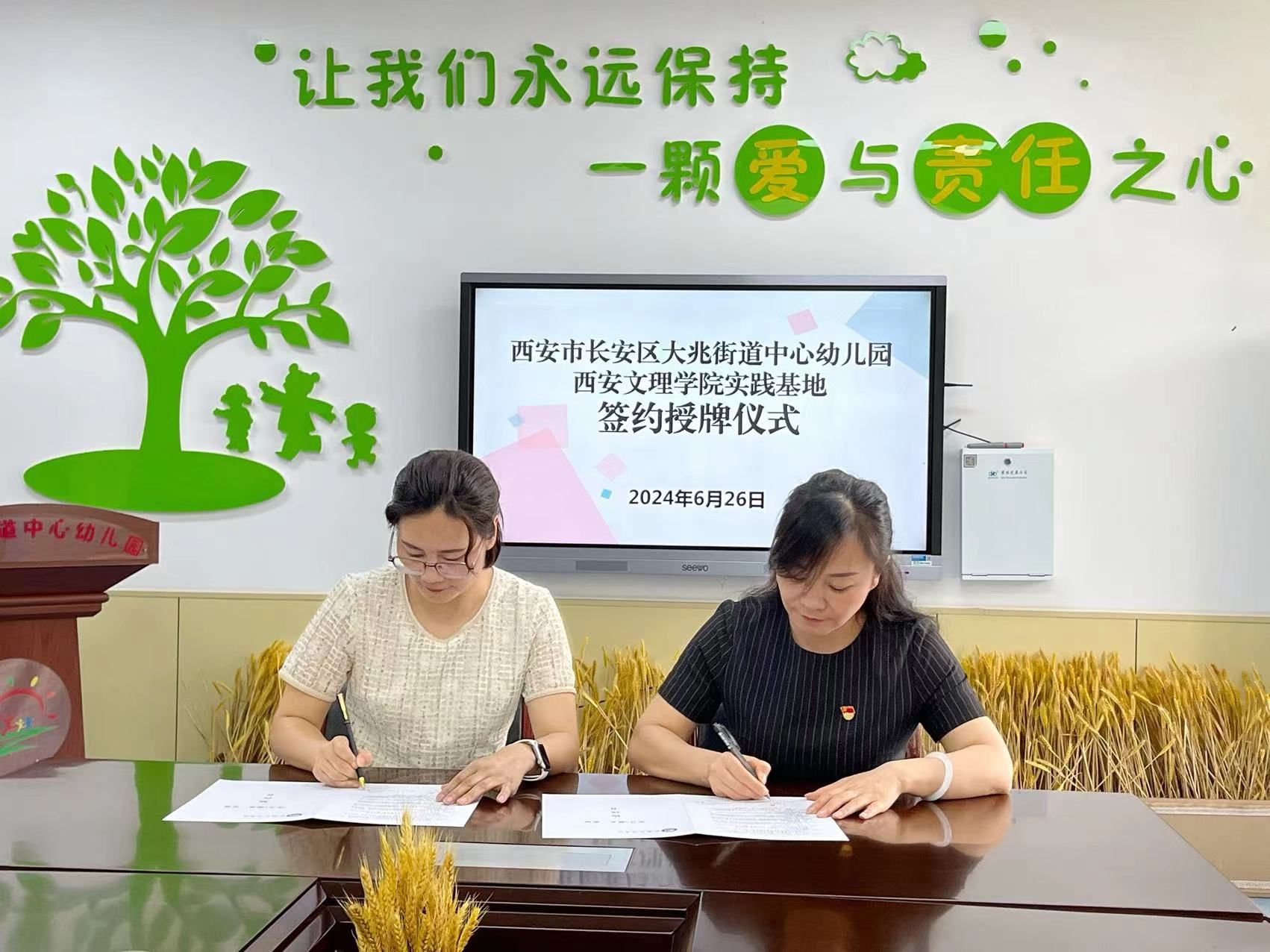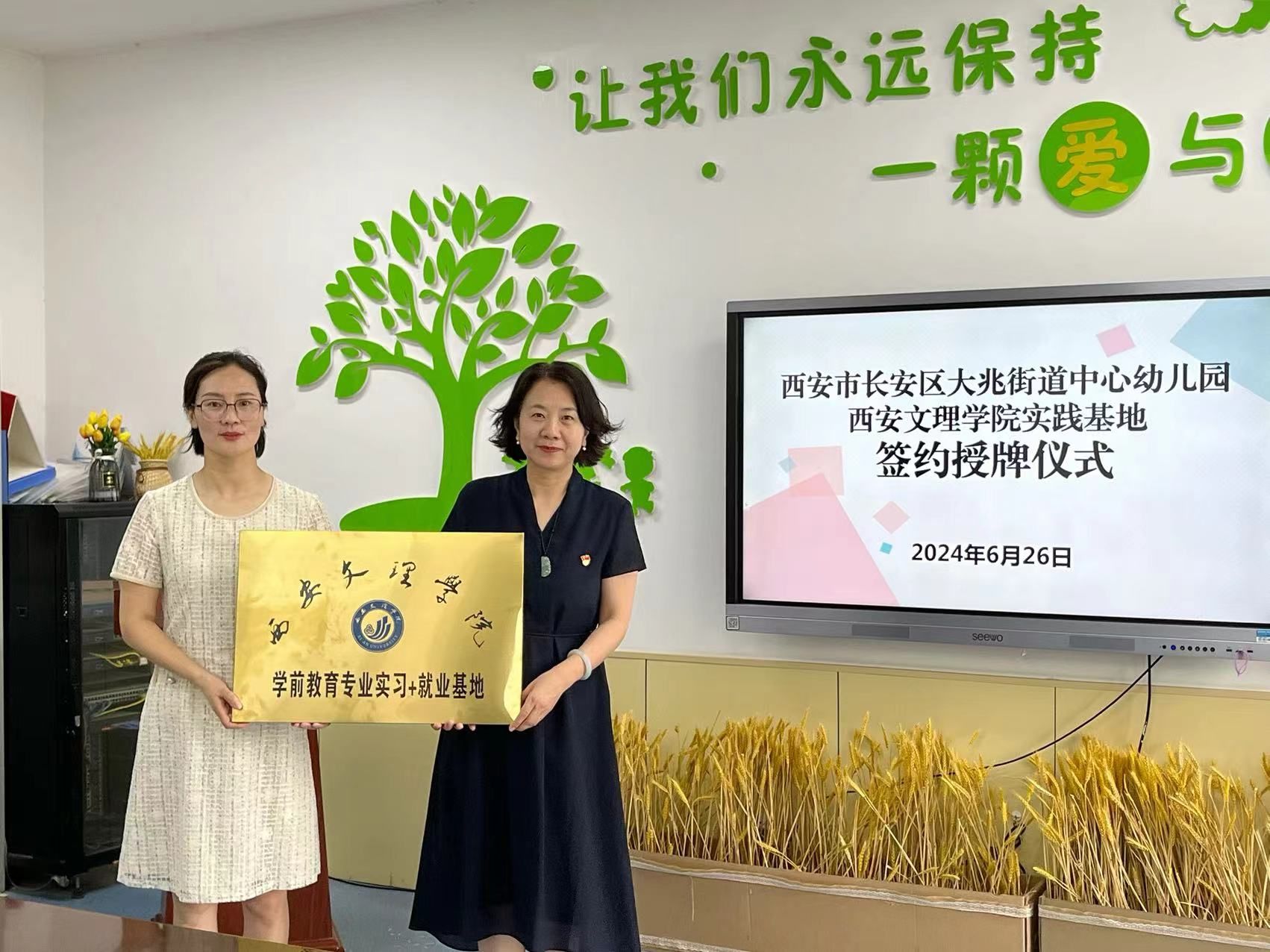 随后,学院与幼儿园签署了“实习+就业”基地协议书,举行授牌仪式。