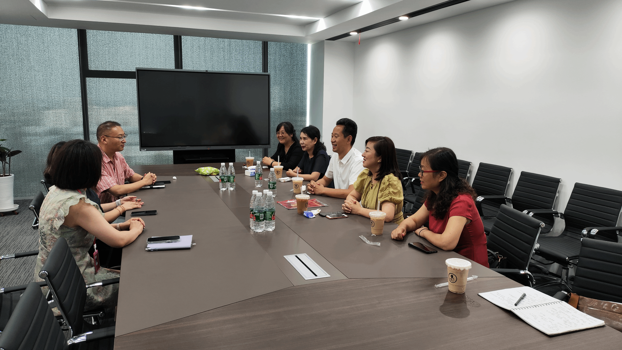 叶娟对学院一行的到来表示欢迎,并感谢学院为企业输送高质量人才,同时积极回应了学院提出的合作意向,表示可为学院人才培养提供师资力量,并约定来校进行深入的科研合作交流。叶娟提出随着公司迅速发展,对各级各类人才需求庞大,公司能够为来企工作的员工或实习学生提供多样化发展途径和富有吸引力的薪酬待遇,希望学校能够加强合作,持续稳定输入对口人才。参会教师代表分别围绕各自负责的专业方向、研究工作以及学生实习等工作,与公司代表进行交流和探讨。