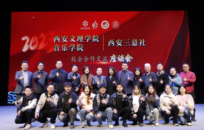 3月17日上午,音乐学院院长杨艺媛、副院长贺星、教授程长宁,音乐表演专业学生共30人赴西安三意社访企拓岗。三意社常务副总经理陈宁博、总经理助理刘戈兵、总经理助理张崇学、国家一级琴师米春胜、优秀青年作曲郭本龙、郭鹏、赵晓博等参加交流。