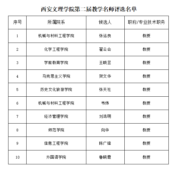 为确保人才培养中心地位和教学工作的基础地位,鼓励教师积极投身一线教学,着力提高人才培养质量,根据《开云kaiyun官方网站教学名师奖评选管理办法(试行)》(西文理校发〔2019〕22号)《关于开展第二届开云kaiyun官方网站教学名师奖评选表彰工作的通知》文件,近日,开云官网组织开展了第二届开云kaiyun官方网站教学名师奖评选工作。经教师个人申报、学院初审、学校初审、校内督导教学效果评价以及校内外专家组评审等程序,拟评选出校级教学名师10名。现予以公示,接受监督。