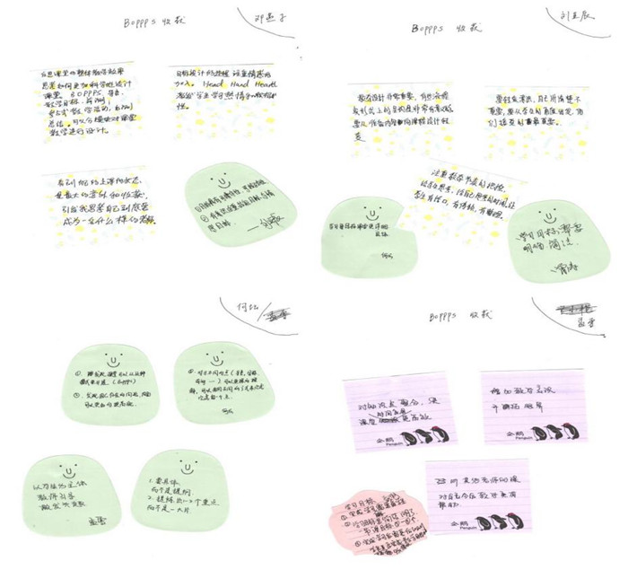在培训的总结回顾环节,学员们表示通过两天的学习对课堂教学的流程有了更清楚的认识,学习到课堂导入、目标设计、活动设计、学习效果检验、教学节奏把握等不同方面的技巧和方法;有学员表示通过录像回顾,以学生的角度来看自己的教学让他们非常震撼并从反思中获益匪浅;集中观摩其他人的教学、直接获得同行所提供的反馈以及教学反思方法的学习对自己日常按部就班的教学有很大的启发,认识到总结、学习和更新非常重要。