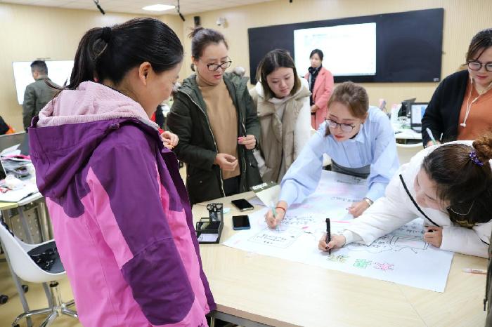 此外,围绕为什么做“翻转课堂”,翻转课堂与讲授课堂学习流程对比,翻转课堂的教学目标,翻转课堂的学习活动,学习指南,反馈调整等内容展开教学。通过全程参与体验式学习,老师们进一步理解翻转课堂是“以学生为本”的教育教学观;进一步明确了翻转课堂的操作流程和设计原则。
