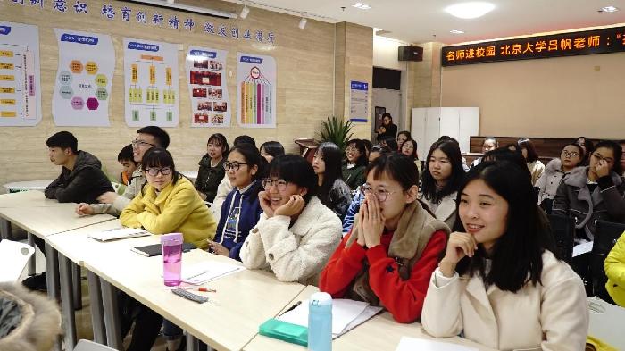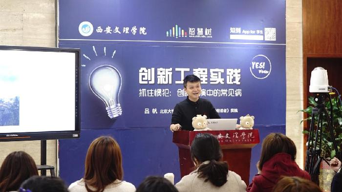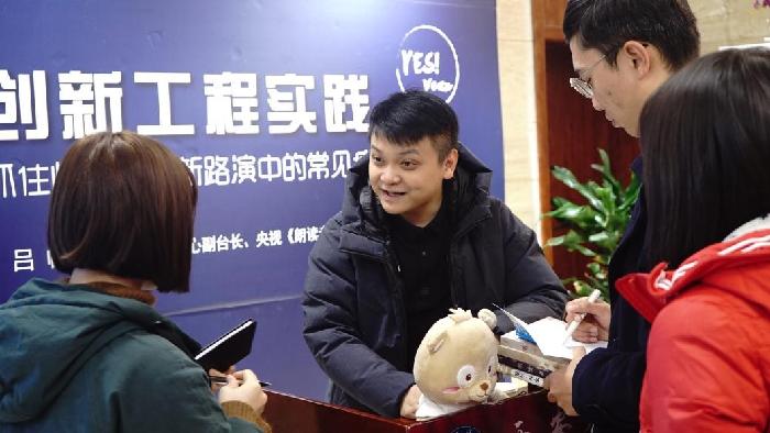 2018年11月21日,由教务处协同智慧树网举办的名师进校园--《创新工程实践》第四次直播见面课在开云kaiyun官方网站创客空间举行,北京大学党委宣传部电视台副台长、《朗读者》撰稿人吕帆老师为我们现场师生及全国选课学生分享了主题“抓住惯犯——创新路演中的常见病”。