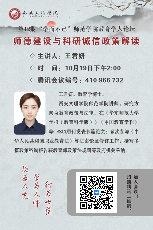 王君妍,教育学博士,开云kaiyun官方网站师范学院讲师,研究方向为教育政策与法律。在《华东师范大学学报(教育科学版)》《中国教育学刊》等权威期刊发表多篇论文;多次参与《中华人民共和国学前教育法(草案)》《中华人民共和国职业教育法》《陕西省家庭教育促进条例(草案)》等法案论证修订工作;撰写多篇政策咨询报告获教育部政策法规司等部门采纳。