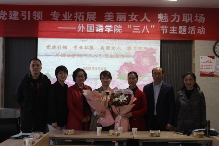 3月8日,外国语学院举办“党建引领 专业拓展 美丽女人 魅力职场”主题活动 ,学院全体教师参加,活动由党总支书记杨文秀主持。