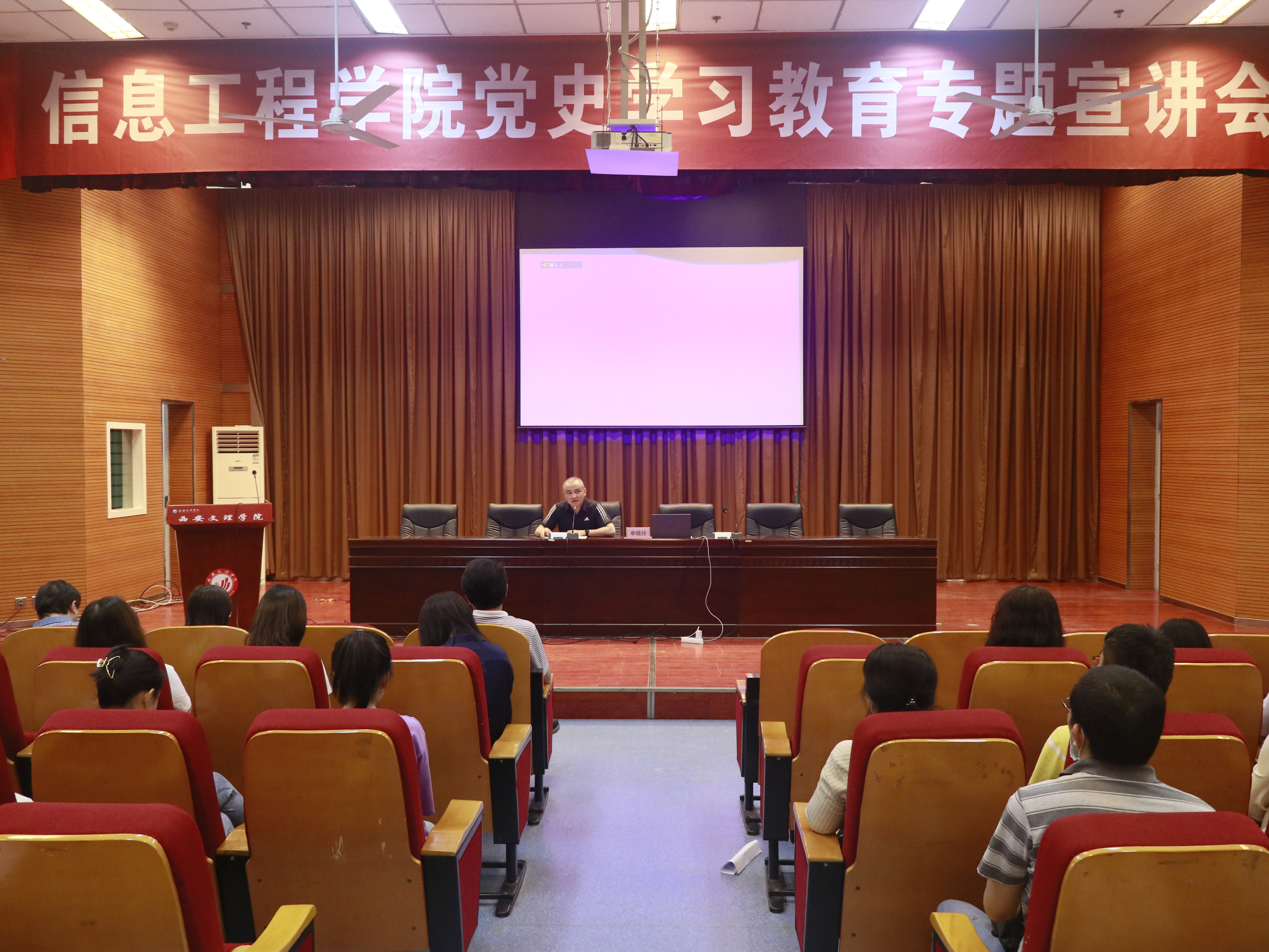 按照学校党委的统一部署,党史学习教育党委宣讲团宣讲员申晓玲副教授于5月12日下午2:30分,在明德楼A区报告厅为信息工程学院师生举办了一场精彩生动的党史学习教育专题宣讲会。信息工程学院处级干部、党支部书记、全体辅导员,以及部分教师、学生党员、入党积极分子等300余人参加了学习,党总支书记李昉主持了宣讲会。
