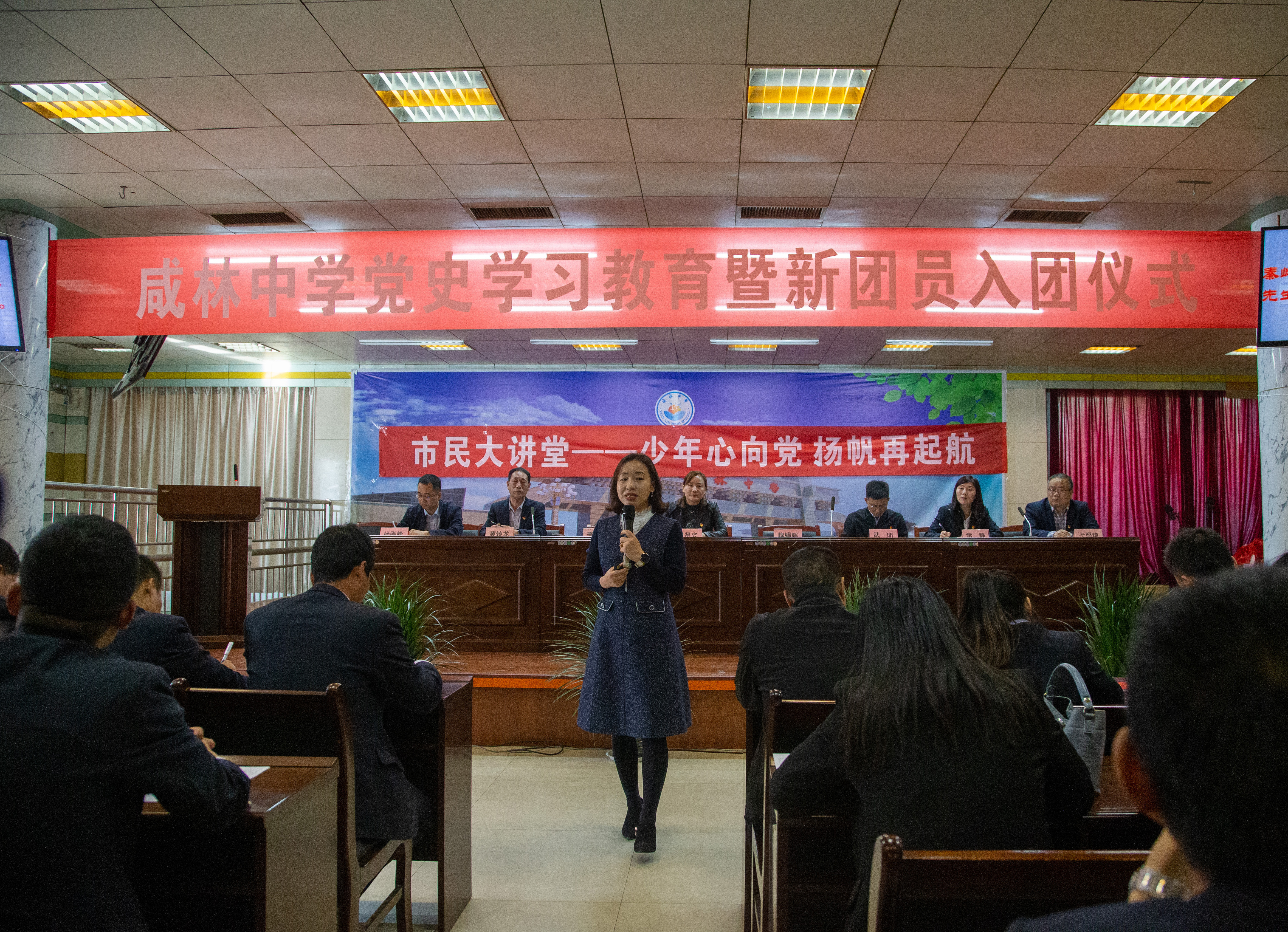 4月28日,党委宣传部一行赴渭南咸林中学开展"党史学习教育进中学校园"宣讲会,党委宣传部副部长魏娟辉以《百年恰是风华正茂》为题,做了一场内容丰富、讲解生动的宣讲,咸林中学党员教师和学生100余人参加了本次活动。