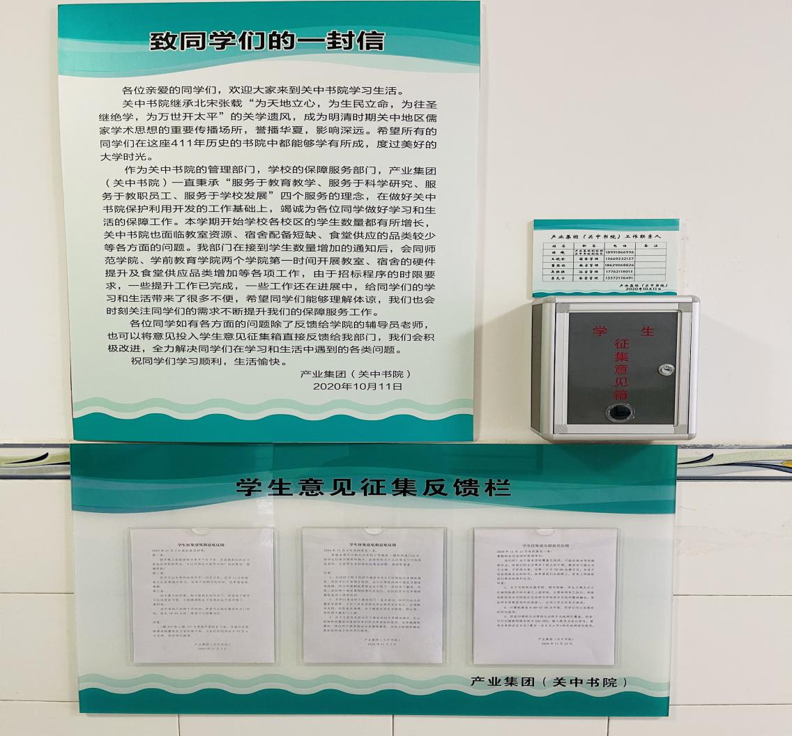 党史学习教育启动以来,产业集团将党史学习教育和中心工作相结合,以“我为群众办实事”为目标,不断提升为师生服务、为师生办事的实效,各项工作扎实开展。一是挖掘梳理学生急难愁盼问题。建立书院校区学生沟通群,学生公寓设意见箱,成立监督岗,畅通沟通渠道,对学生反映的各类事项第一时间解决。在酷暑到来前,对学生宿舍空调、风扇逐一排查维修更换,调整学生洗浴时间,延长用餐时间。二是提高书院校区教学保障能力。和学院沟通制定书院校区教室、实训室、餐厅、公寓、图书馆、校园网络等基础设施改造提升方案,各改造项目有序推进,确保下学期开学投入使用。三是发挥关中书院社会服务职能。承办陕西省社科院、西安市科技局、南院门街道办等多家单位传统文化体验活动,让书院文化、关学精神发扬光大。四是提高产业集团服务师生水平。定制开云kaiyun官方网站、关中书院品牌苏打水在本学期毕业典礼时免费向毕业生及家长提供,增加毕业生幸福感。集团所属重德物业承接太白校区物业服务外包项目,下大力气整治家属区环境卫生、停车秩序,为教职工营造了安全和谐的生活环境。