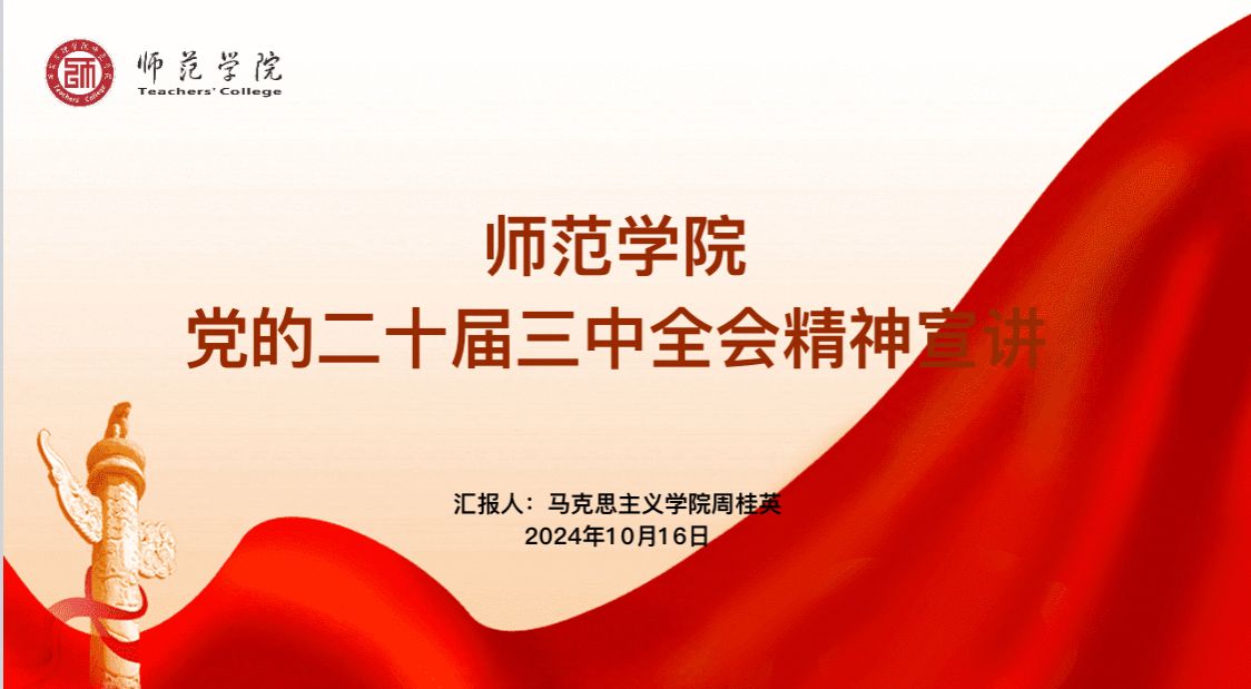 此次宣讲会的成功举办,不仅是对党的二十届三中全会精神的一次深入学习和宣传,更是对学院全体教职工的一次深刻的思想洗礼和精神激励。师范学院将继续以高度的政治责任感和使命感,深入学习宣传贯彻党的二十届三中全会精神,为推动学校高质量发展、为实现中华民族伟大复兴的中国梦贡献智慧和力量。