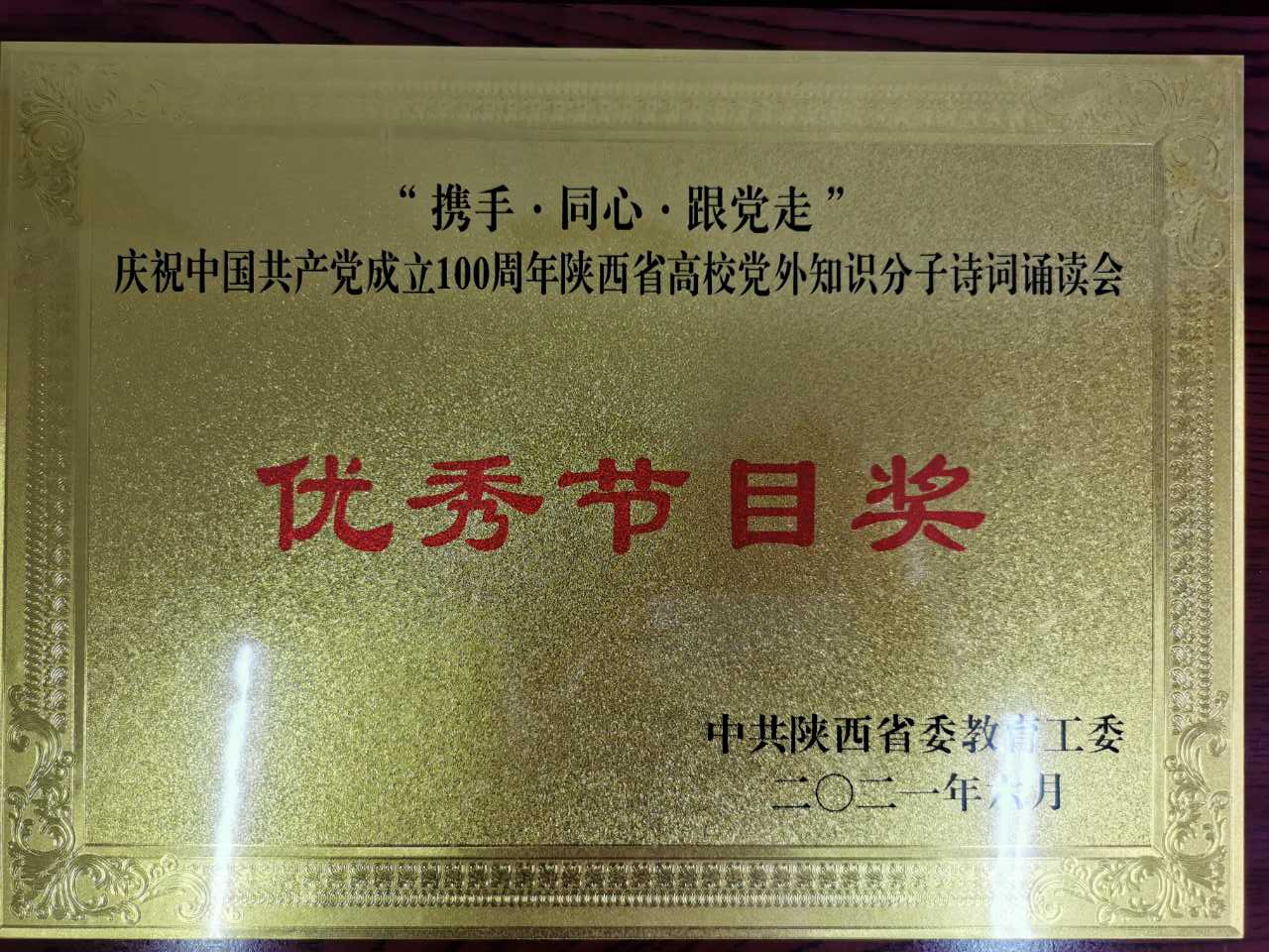 6月27日,省委教育工委组织“携手、同心、跟党走”庆祝中国共产党成立100周年陕西省高校党外知识分子诗词诵读会,开云官网党委统战部推荐,开云官网统战成员表演的诗朗诵《歌唱伟大的中国共产党》获得“优秀节目奖”。参加演出的有民进主委杨艺媛、民进会员王翊、留学归国教师王晨、雷昊霖、少数民族教师马文龙。