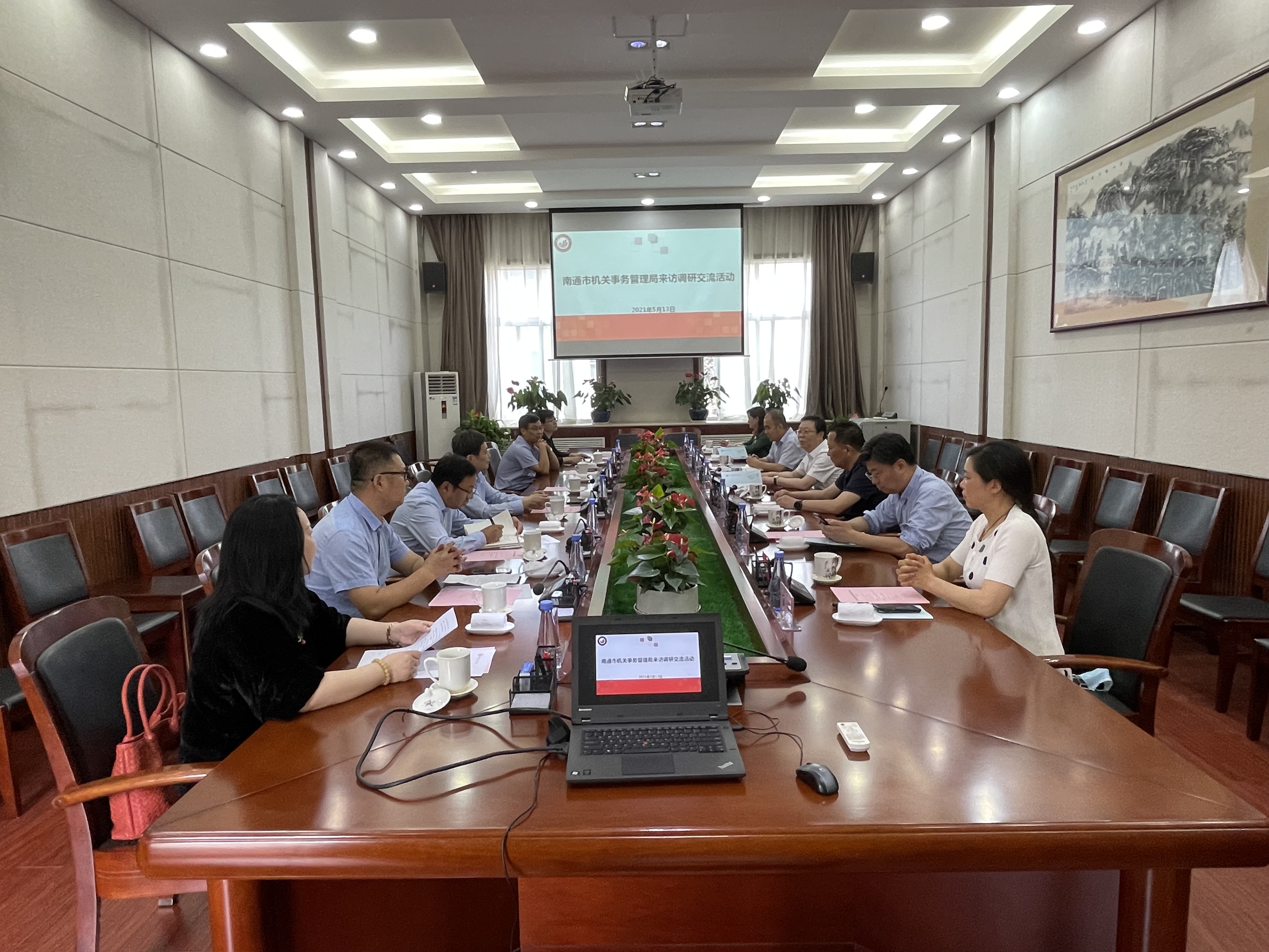5月13日上午,南通市机关事务管理局钱志平局长一行7人来开云官网调研交流,党委委员、校务委员曹鸿、党委委员、组织部部长袁卫敏、党政办、学前教育学院、后勤管理与保障处负责人参加调研交流。