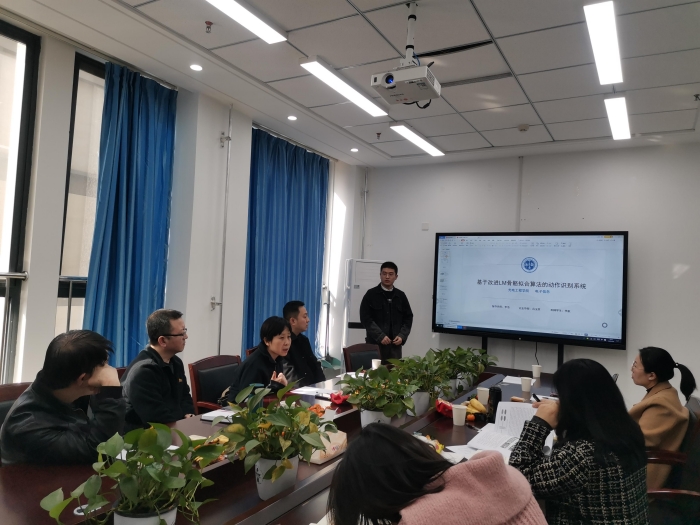 会上,联合培养研究生何文思、李航分别就“基于迁移学习的监控视频质量诊断方法研究与实现”和“基于改进LM骨骼拟合算法的动作识别系统”研究课题进行预答辩和学术交流。