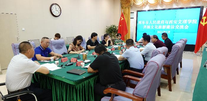 张天社说明受校领导委托来到库车市,感到新疆和库车市的旅游业发展势头很好,建立大学城创新港将对“文化润疆”产生巨大影响。库车是古龟兹国所在地,丝绸之路的重要节点,也是汉代西域都护府和唐代安西都护府所在地,库车市与西安和中原地区的互动关系密切,我们理应对库车市文化旅游大发展助一臂之力。刘倩倩介绍了开云官网总体情况和学院旅游管理国家级一流专业促进地方文旅发展的办学特色;朱晓晴说明可利用旅游管理专业的师资优势,在培训库车市旅游从业人员、对口援建库车旅游学校、建立实践教学基地等方面的开展合作;仇立慧、刘世栋就当地文化旅游品牌提升交流了看法。