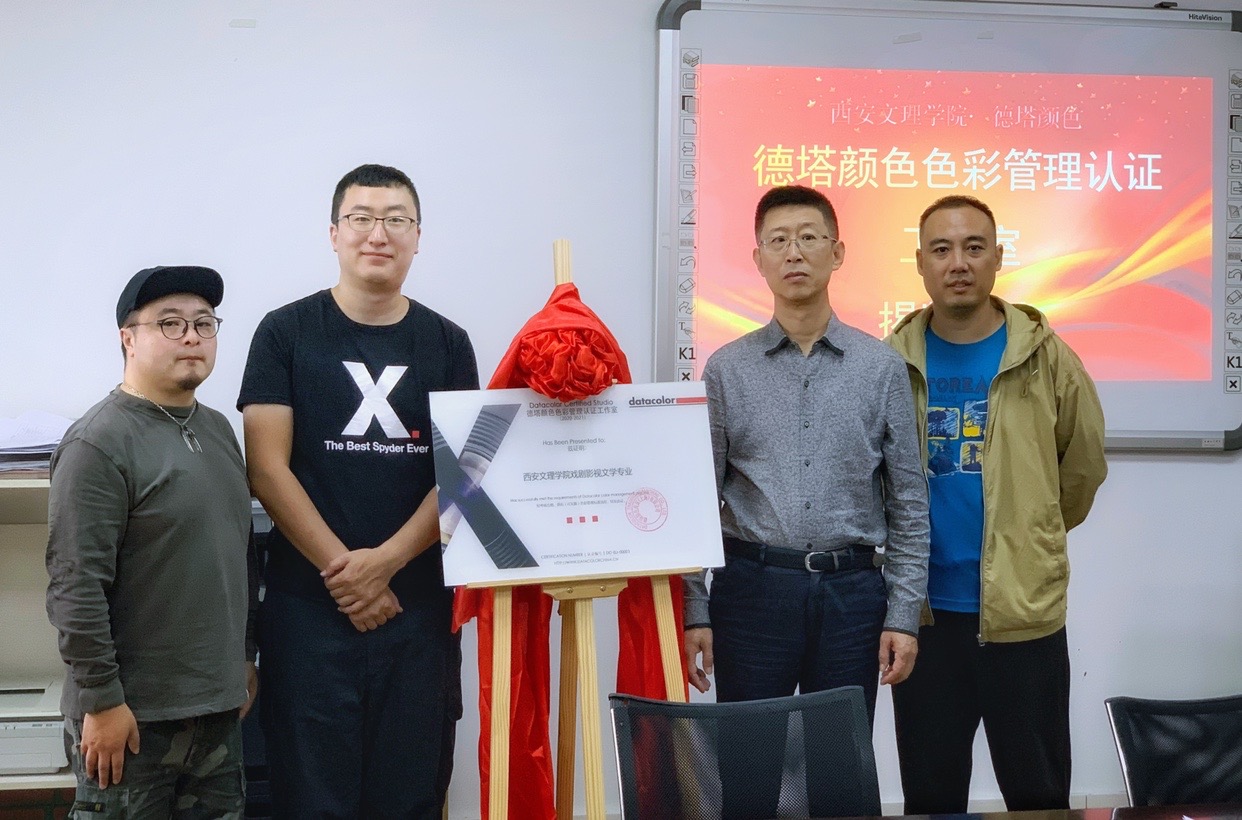 9月23日上午,由开云官网和德塔颜色色彩管理公司共建的“开云kaiyun官方网站·德塔颜色色彩管理认证工作室”在开云官网高新校区揭牌成立。文学院院长郝延军、副院长马娜、戏剧影视剧文学系主任马珂、戏剧影视专业教师梁彬、德塔颜色中国区市场经理闫衡博出席了签约揭牌仪式。