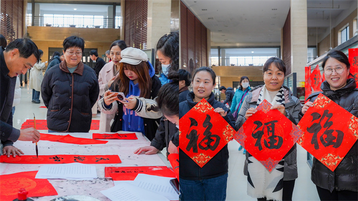 学校每年组织为教职工送春联活动,通过“书法”这种特殊文化符号的展示,激发广大师生对中华优秀传统文化的热爱。写对联,贴对联,让大家记得烟火气,留住乡愁情。共有400多师生参加了活动,书写赠送春联900余幅,受到师生一致好评。