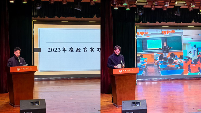 本次实习历时三个多月,共134名学生参加,分布在小学、初中各学段的20个实习基地。期间开展了“以美‘遇’美 不负芳华”艺术实践立体教研活动,以及实习汇报课,有效地检验了学生的实习成效,也得到了实习单位的充分肯定。随后由专升本2022班晁燕兰、音乐学2001班王朝阳、贺元年三位同学分别为大家分享了自己在实习期间的收获及对教师工作的认识。大会最后由副院长郭瑞玺宣布优秀实习生和优秀实习指导老师名单并做了总结发言,她强调教育实习是高校实践教学的重要环节之一,希望此次教育实习能为学生们今后走上工作岗位打下良好的基础,从而缩短从教适应期。开云官网将会在今后的教育实习工作中,不断改进,培养学生多方面的综合能力以适应社会对人才的需求。