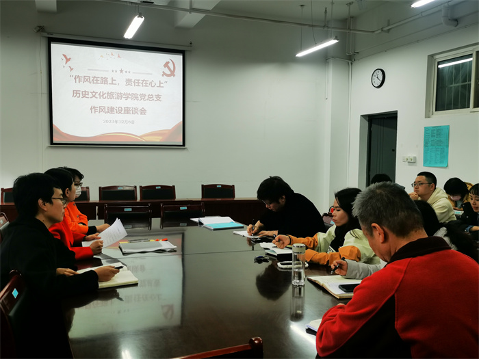 期末在即,各项工作进入收尾及考核准备状态,为了强化干部作风,加强行政管理,发挥高效职能,12月6日,历史文化旅游学院党总支在明德楼A0306召开“作风在路上,责任在心上”作风建设座谈会,学院全体处科级干部、行政管理及教辅人员参加了会议,会议由党总支书记刘倩倩主持。
