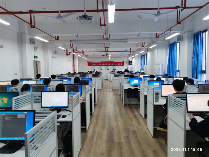 比赛分初赛和决赛,均历时三个小时。参赛学生分别在Java软件开发 、C/C++程序设计、Python程序设计等项目展开了激烈角逐。赛场弥漫着紧张的气氛。选手们凝神静气,思考解法,利用精通的软件,编写程序,设计代码,攻克难题,在比赛中展示出色的创新思维和解决问题的能力。