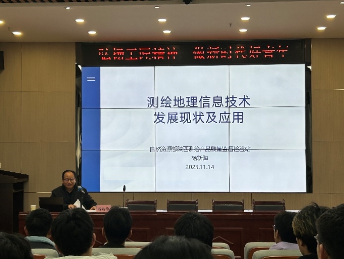 为提升地理空间信息工程专业学生对测绘地理信息技术行业发展及应用的认知,11月14日下午,生物与环境工程学院特邀自然资源部陕西测绘产品质量监督检验站站长、高级工程师、大国工匠——杨新海作了题为《测绘地理信息技术发展现状及应用》的学术报告。地理空间信息工程专业全体教师、自然地理与资源环境专业及地理空间信息工程专业学生参加了本次活动,活动由资源环境系系主任赵德芳主持。