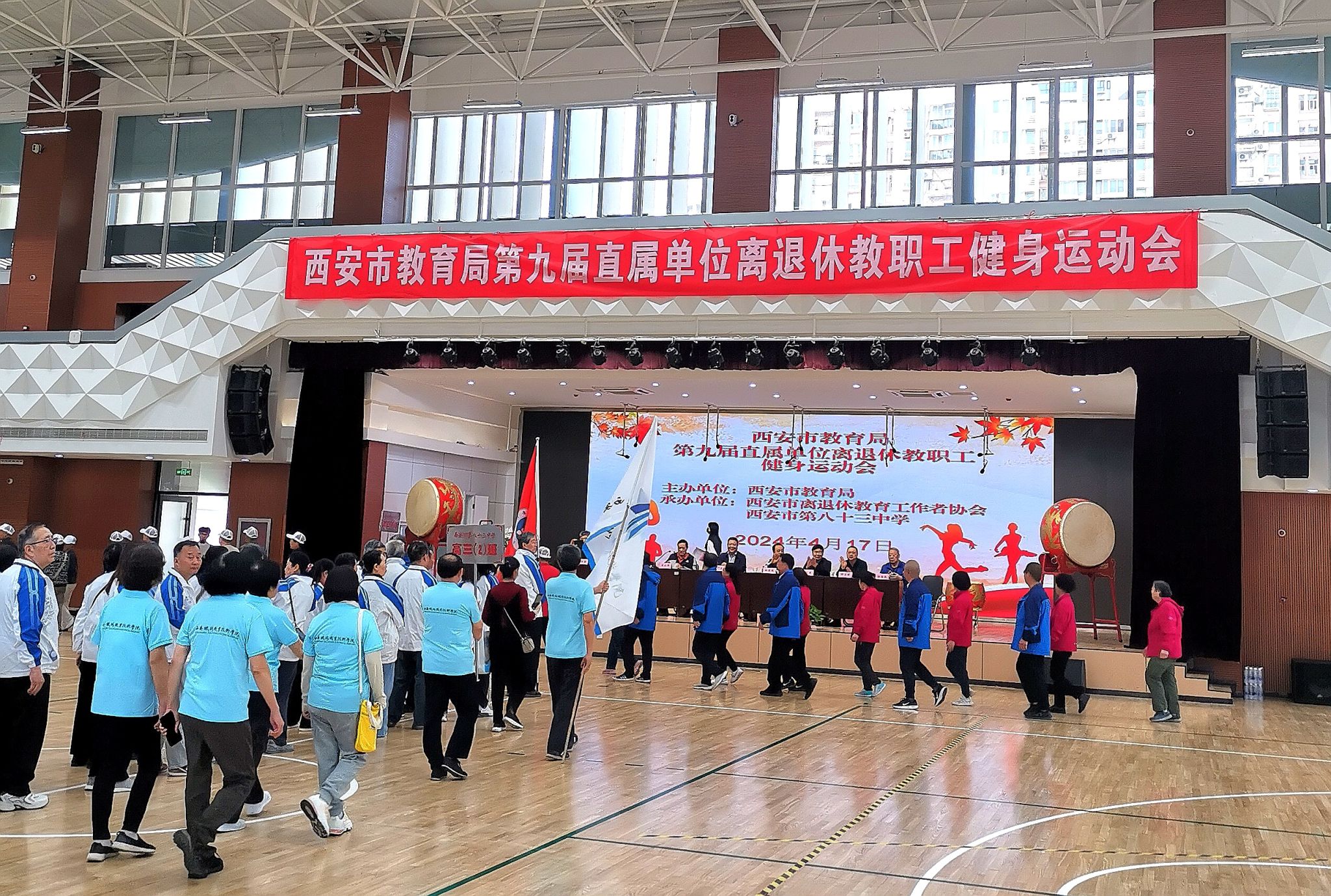 为丰富离退休教职工精神文化生活,展示离退休教职工积极乐观、阳光向上的精神风貌,4月17日上午,“西安市教育局直属单位第九届离退休教职工健身运动会”在西安市第83中举行。
