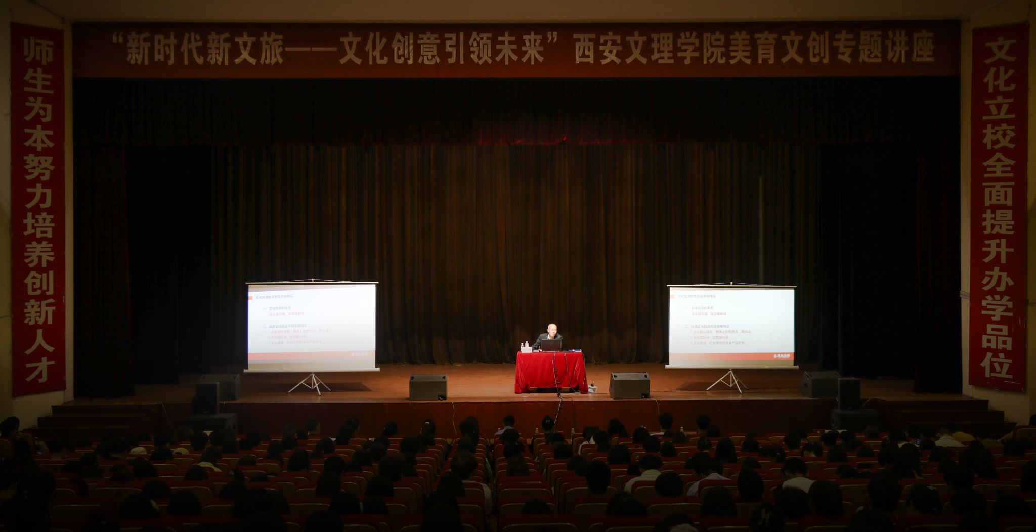 4月24日晚,美术与设计学院邀请陕旅集团副总经理王汉琳在学校大礼堂开展“陕西文旅新时代新文旅——文化创意引领未来”美育文创讲座。