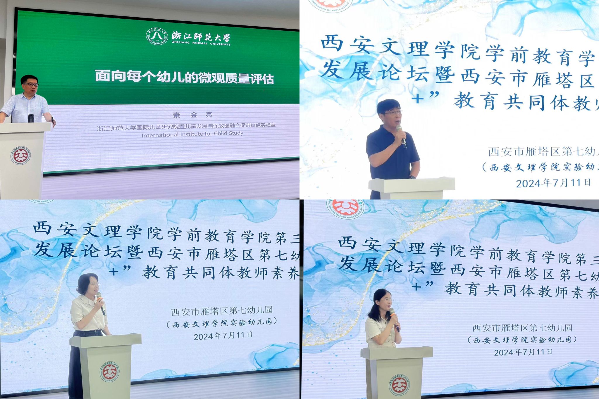 刘爱霞和左自文分别代表学前教育学院和雁塔区教育局致辞。秦金亮以“面向每个幼儿的微观质量评估”为题作了近三小时的学术报告,他结合丰富的教育案例对微观质量评估的“基础理论”“教学应用与实践”“工具体系”“指标体系结构”等方面进行了全面解读,就目前学前教育领域最关注的幼儿园保教质量评估问题,为学院及一线幼儿园教师进行解读,充分展现“七个五”首席专家助力西安市基础教育高质量发展的作用。