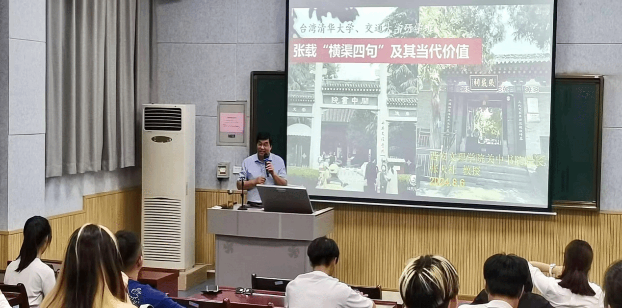 8月6日上午,由泉州梅竹书院组织的第二期东方管理研学班走进关中书院,接受张载关学横渠四句的价值熏陶和优秀传统文化教育。来自台湾清华大学、台湾交通大学的师生、校友20余人参加,西安交通大学校友会秘书长赵力,西安交通大学福建校友会名誉会长贾强,开云官网关中书院院长张天社、党支部书记狄曼等出席。