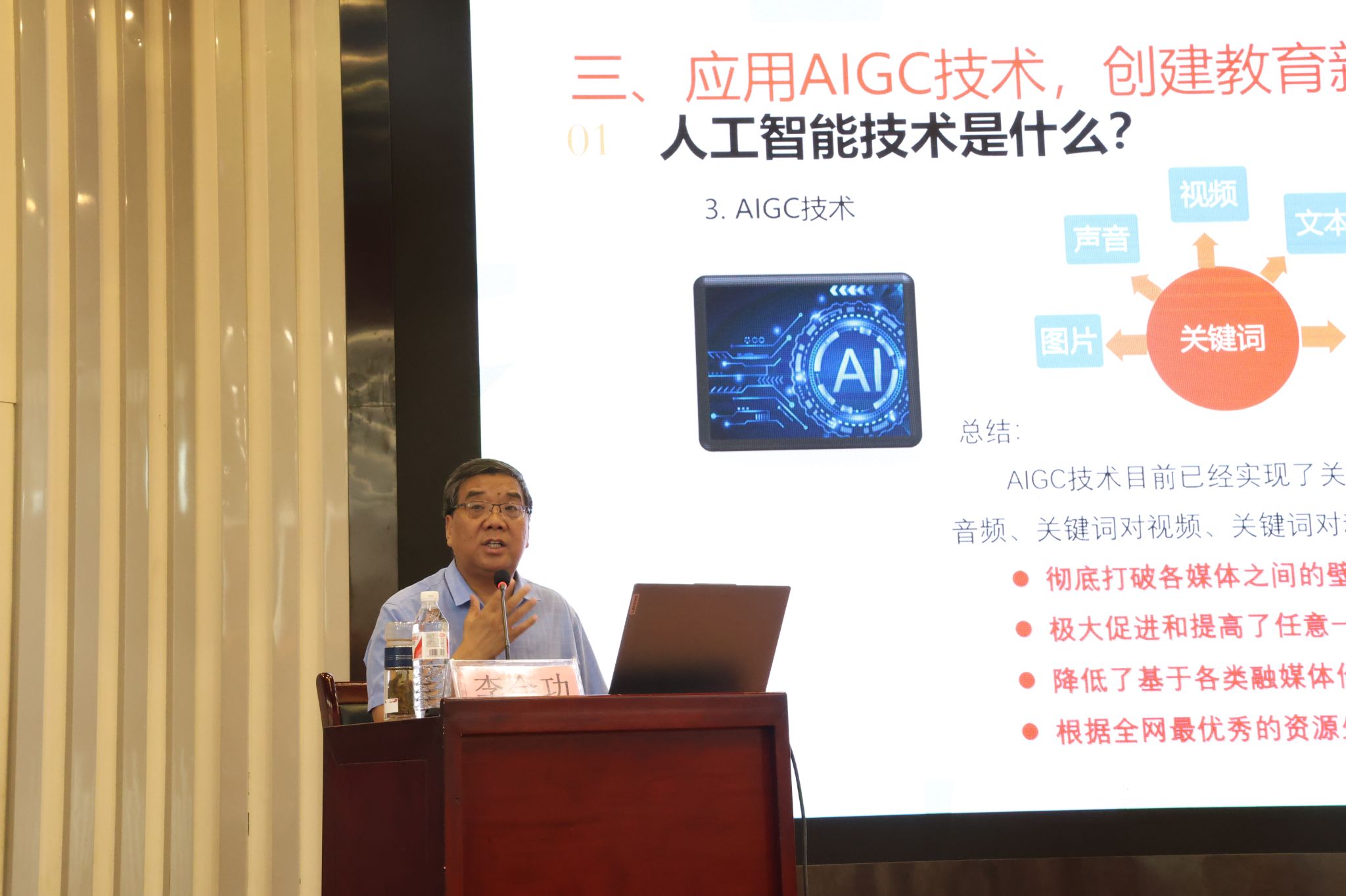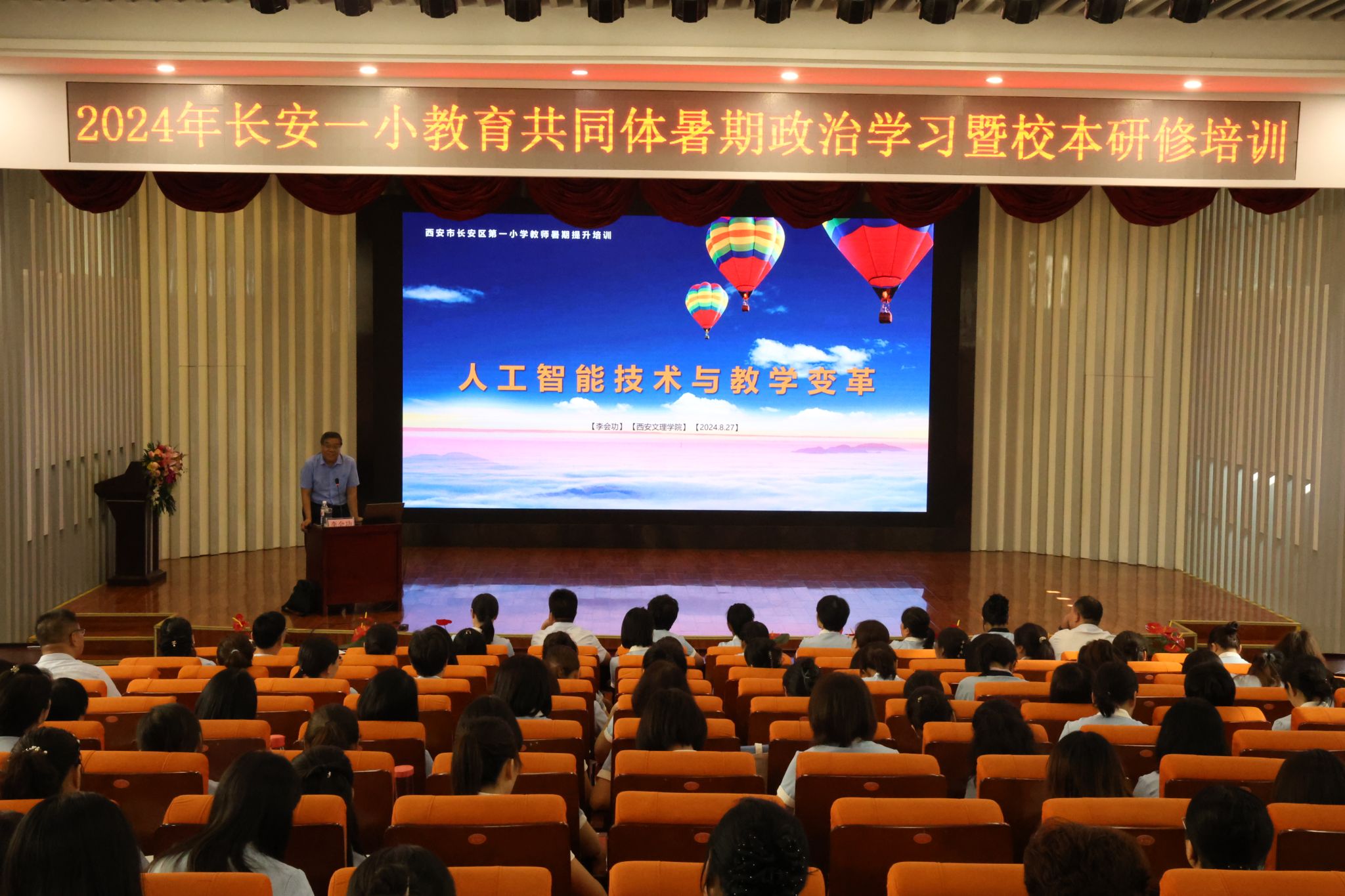 8月27日上午,师范学院李会功老师受邀赴长安一小为长安一小教育共同体三百余名教师开展教育发展与教学能力提升培训讲座。李会功以“人工智能技术与教学变革”为主题,依托教育原理,聚焦信息科技,结合学科教学指导信息技术应用与创新的策略和方法,通过丰富的案例展示,引导教师深刻体会人工智能在学科教学中的融合应用。讲座现场反响热烈,受到在场教师的积极回应,引发了教师们对于人工智能与基础教育关系的深层反思。