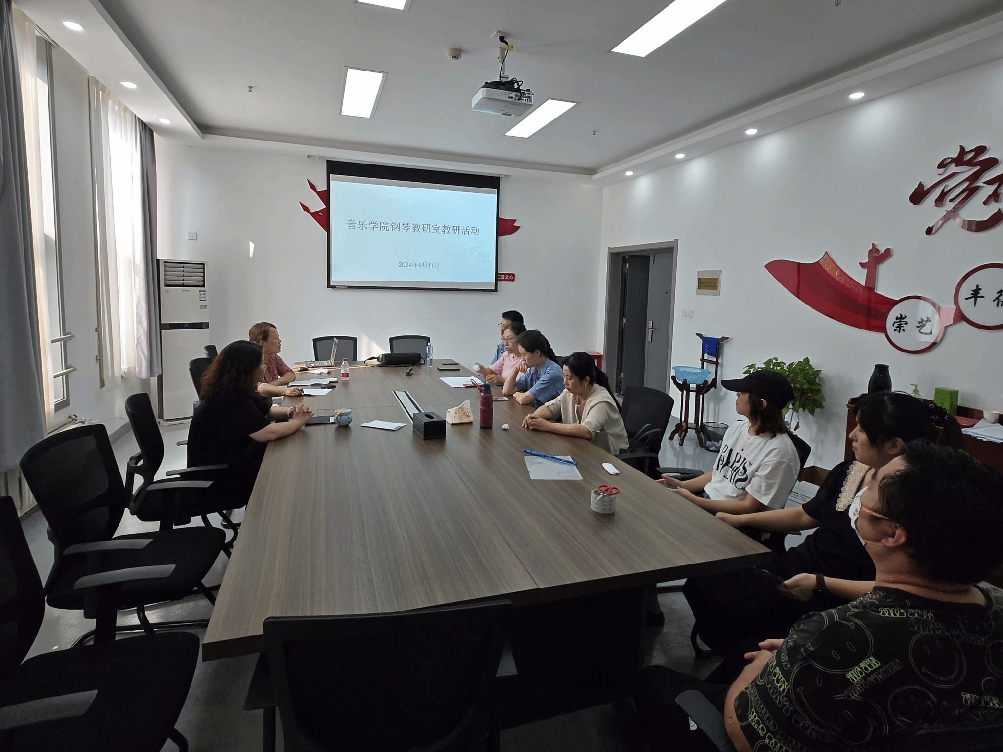 为促进学院教师专业素养的提升、促进教师间的交流与合作、提高教学质量、推动教育改革与创新以及适应教育发展需求。 9月11日下午,学院钢琴教研室在明德楼C305会议室举办了本学期第一场教研室学科研讨会。音乐学院院长杨艺媛及全体钢琴教师参加了本次会议,会议由教学副院长郭瑞玺主持。