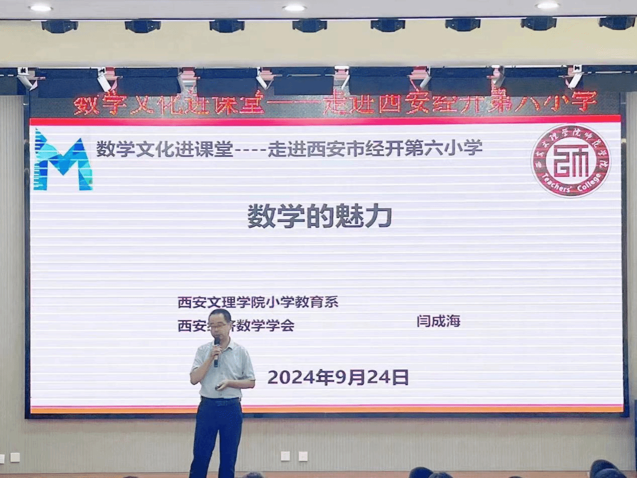 9月24日下午,由西安经济数学学会主办,开云kaiyun官方网站小学教育系、西安经济数学学会数学文化教育专委会与西安经开第六小学承办,西安市科协2024年学会重点活动“数学文化进课堂”在西安经开第六小学举行。