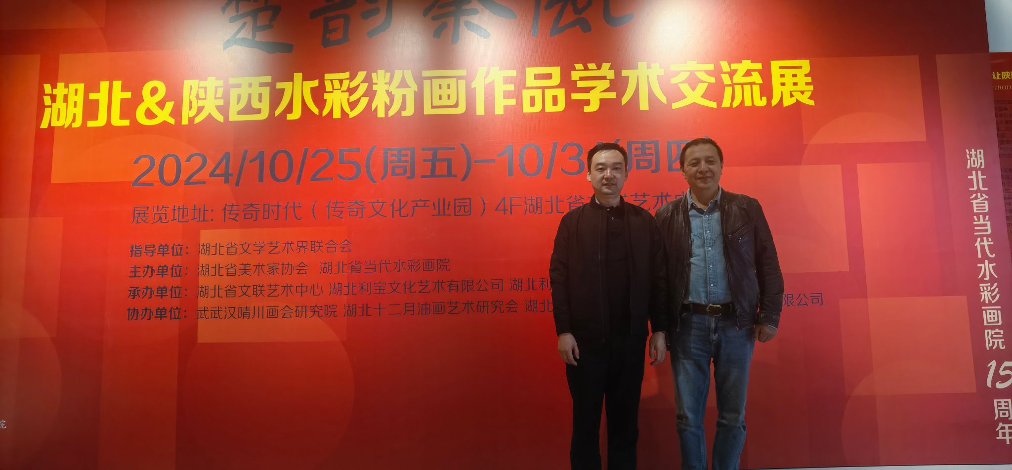 为加强湖北、陕西两地水彩研究院学术交流与合作,共同推动水彩画繁荣与发展,展示两地水彩画艺术的最新成果,增进两地艺术家之间的友谊,10月24-26日,美术与设计学院党总支书记魏夫涛、对外交流与展览中心主任张田力应邀参加“楚韵秦风”湖北陕西水彩粉画作品学术交流展在武汉开幕暨学术研讨会,来自湖北、陕西、浙江、山东、福建、云南等地的百余位艺术家齐聚一堂。