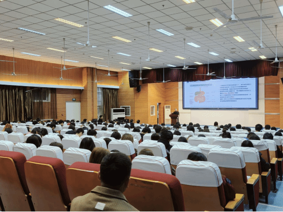随后,各位专家带来了精彩报告。王子见与大家分享了《基于核质转运通路的神经退行性疾病候选药物研发》的经历,探讨了实验过程中遇到的各种挑战,并指出培养创新思维和技术水平、加强团队合作是推动学习和发展的关键环节。李元教授以轻松幽默的方式介绍了其研究成果——《神奇的外泌体》,他追溯了外泌体从发现到应用的全过程,通过具体案例展示了外泌体研究所取得的成就,并提到国家层面对此领域的关注和支持,展望外泌体这个小小的囊泡所蕴藏的巨大产业。朱峰教授则为大家介绍了《微生物组疗法与创新活菌药物研发》,以“肠道菌群检测”为切入点,进一步深入肠道微生物与人体免疫系统的相互作用,为大家生动再现产品从研发到临床应用的具体过程。随后,朱教授深入分析了当前生物医药行业的发展现状及其优势所在,同时也指出了该行业面临的主要考验及未来发展趋势。整场报告会上,师生与专家热烈交流,在互动中加深了对罕见病发病机制、外泌体创新应用、肠道微生物与精神类疾病相关性等知识领域的探索。