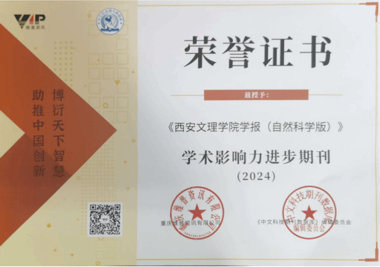 近日,维普《中文科技期刊数据库》公布“学术影响力进步期刊(2024)”名单,《开云kaiyun官方网站学报(自然科学版)》获得重庆维普资讯有限公司和《中文科技期刊数据库》编辑委员会联合颁发的“学术影响力进步期刊(2024)”奖项。
