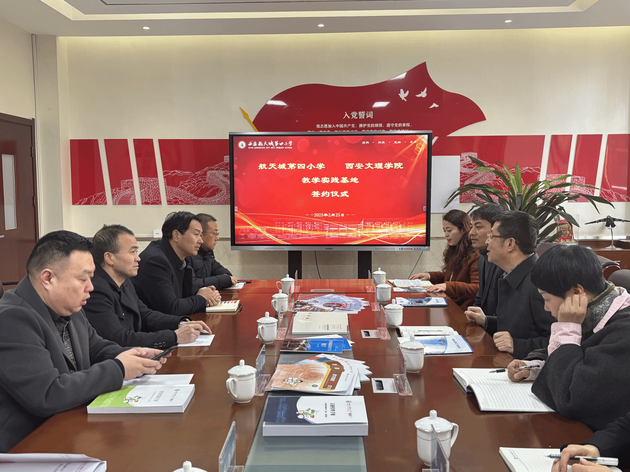 2月26日,信息工程学院院长陈广锋、招生就业处处长李小勇一行7人赴航天城第四小学开展教学实践基地签约仪式,航天城第四小学校长杨勇对一行人的到来表示热烈欢迎。