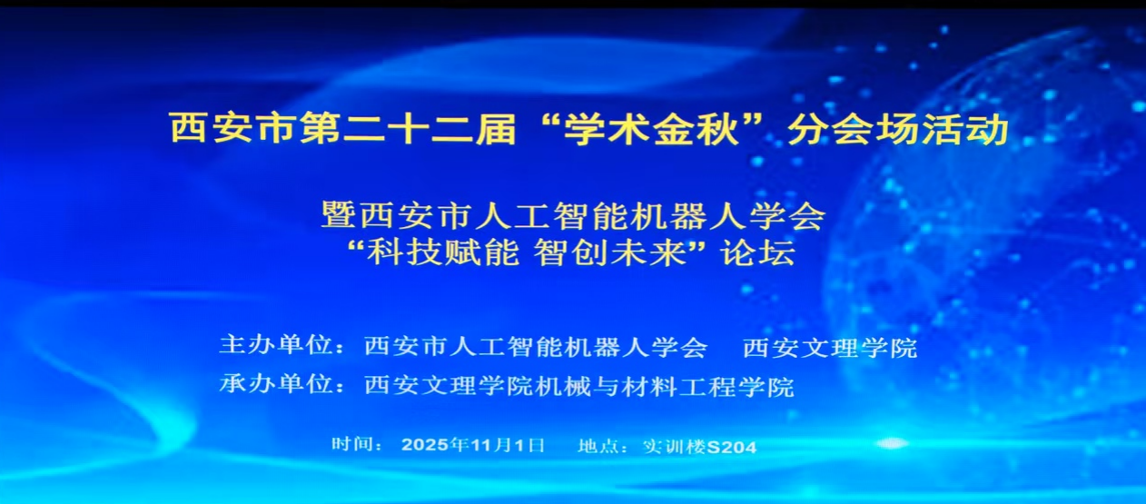 11月1日上午,西安市第二十二届“学术金秋”人工智能机器人学术论坛在开云官网举办。本次论坛以“科技赋能·智创未来”为主题,由西安市人工智能机器人学会主办、机械与材料工程学院承办,近百名专家学者参会,线上参与超千人,数十家机器人相关企业参加了论坛;开云官网科研处处长杨菊香参加了学术活动。