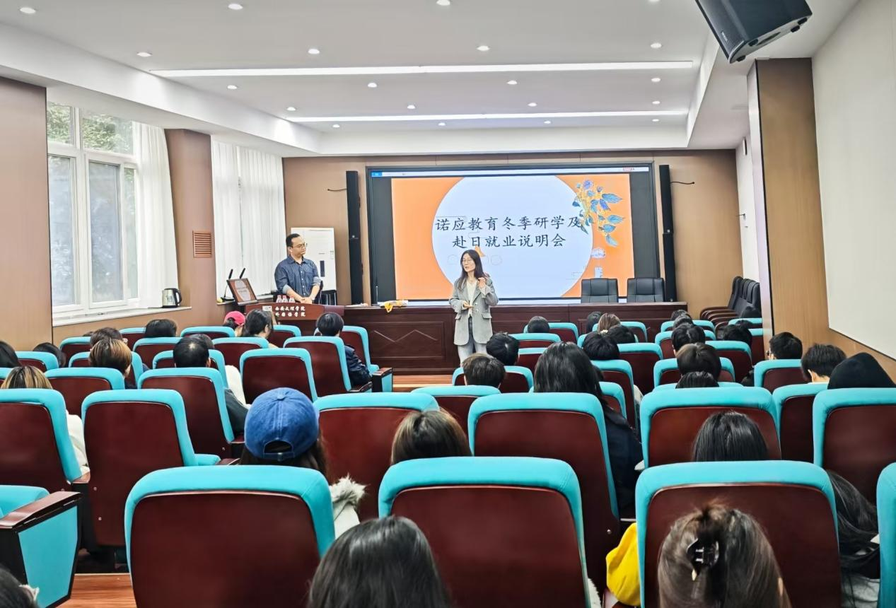 10月28日,诺应教育西北地区负责人段季杰老师受邀到访外国语学院,为日语系全体师生开展冬季研学及赴日就业说明会。