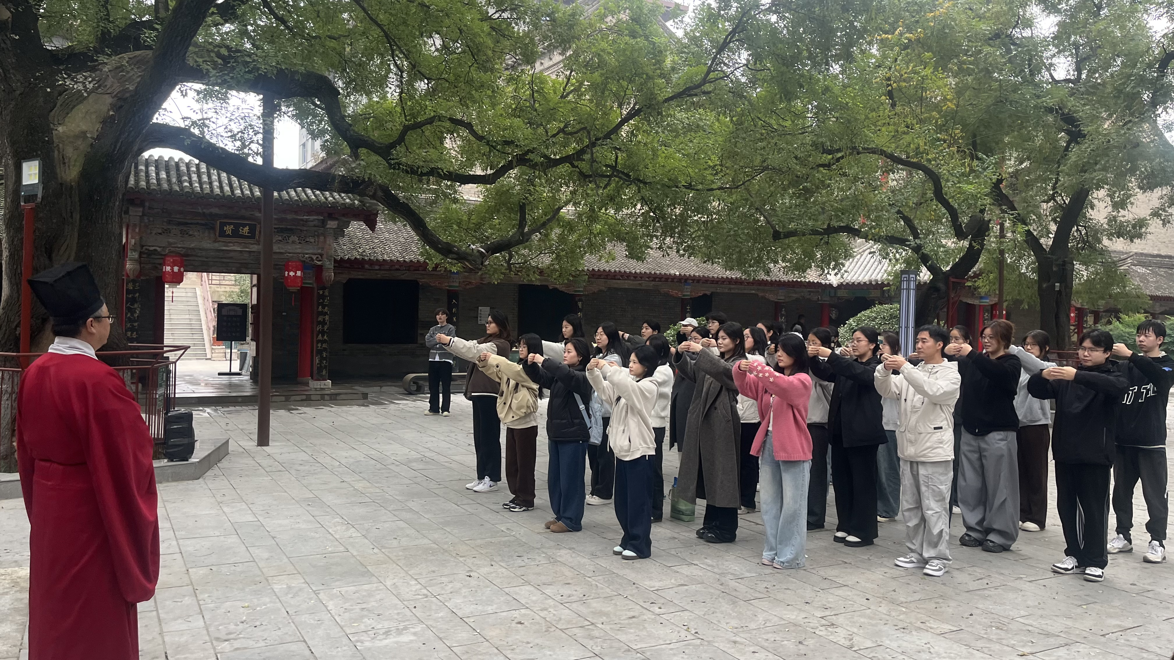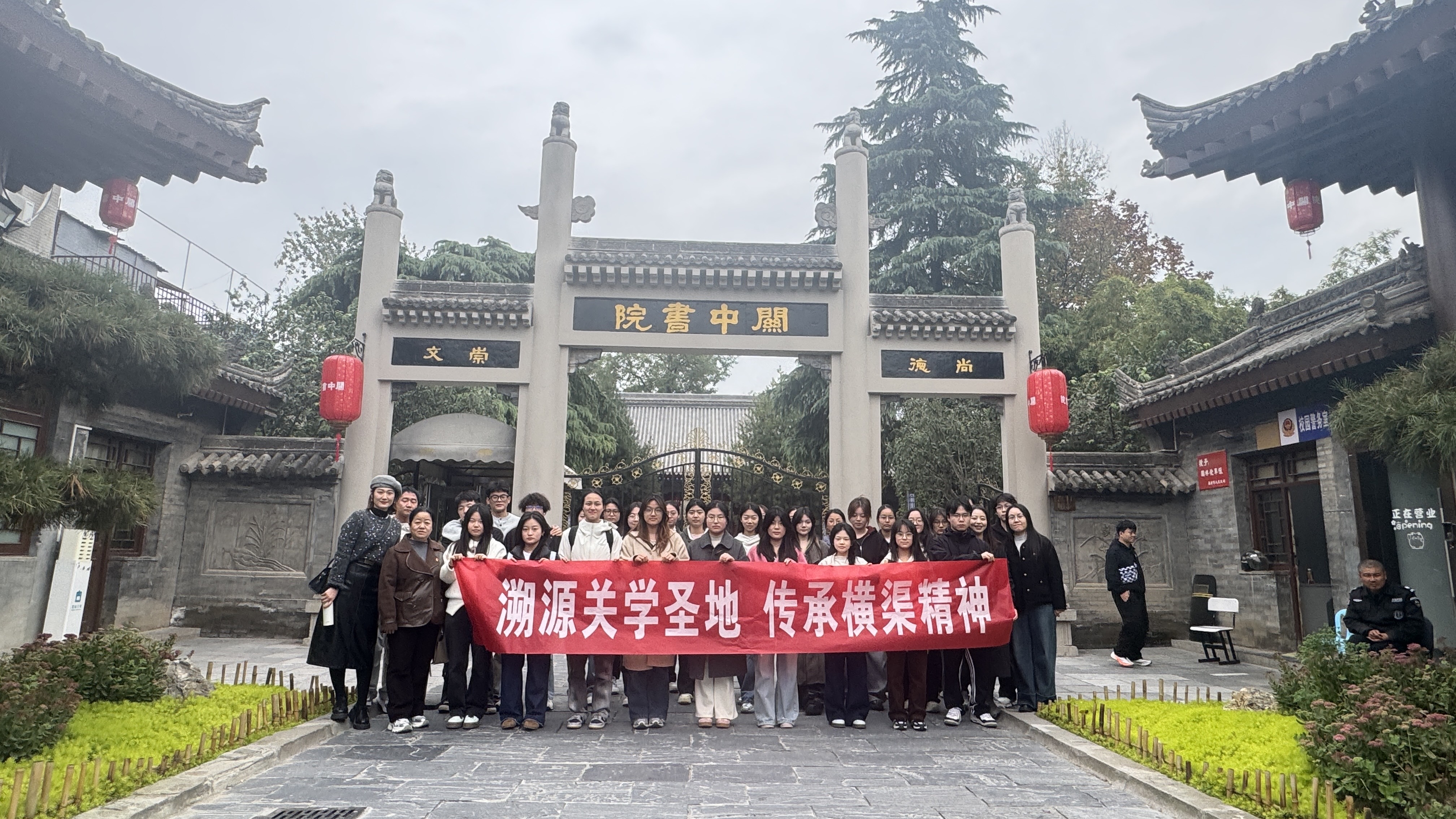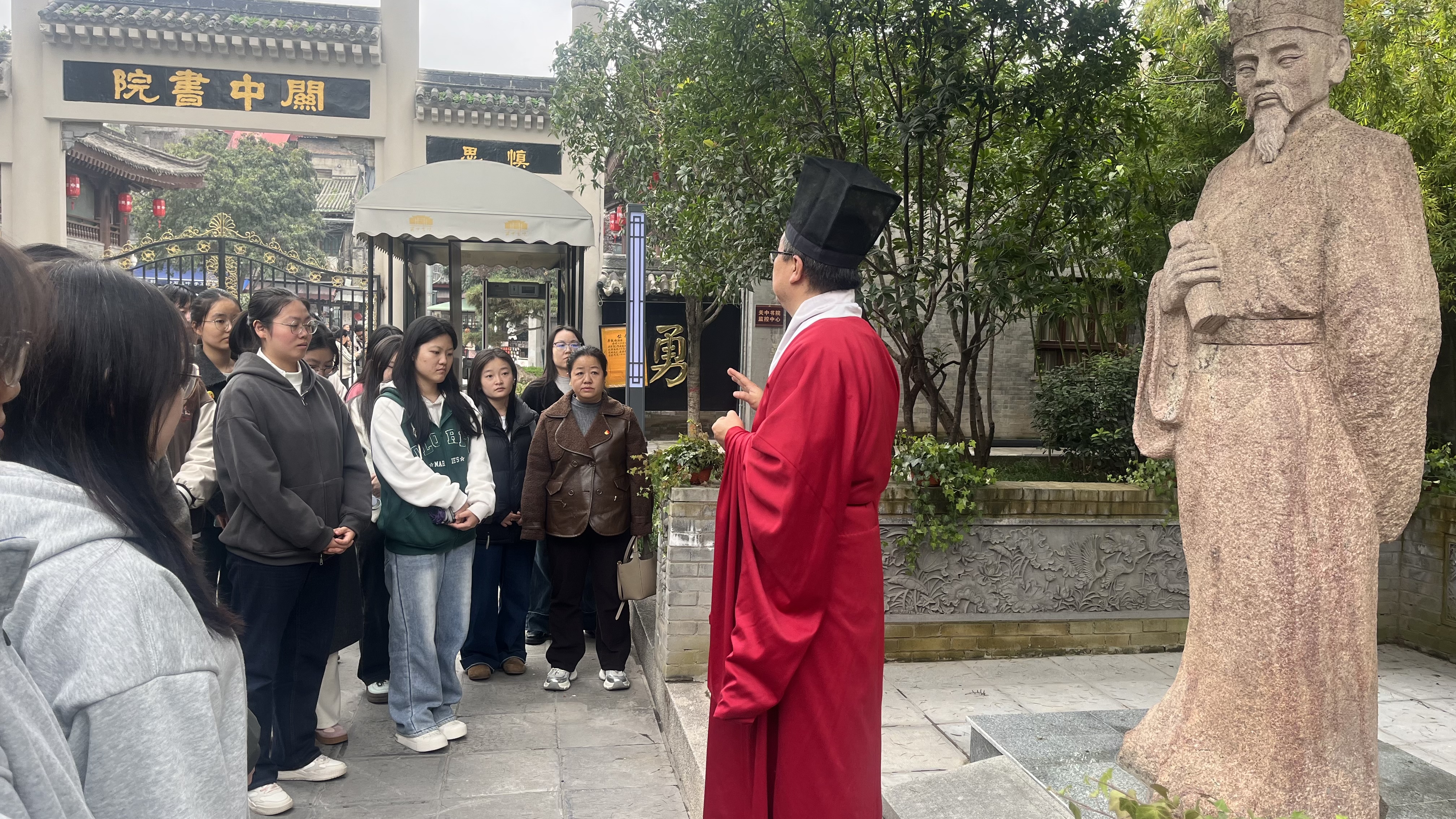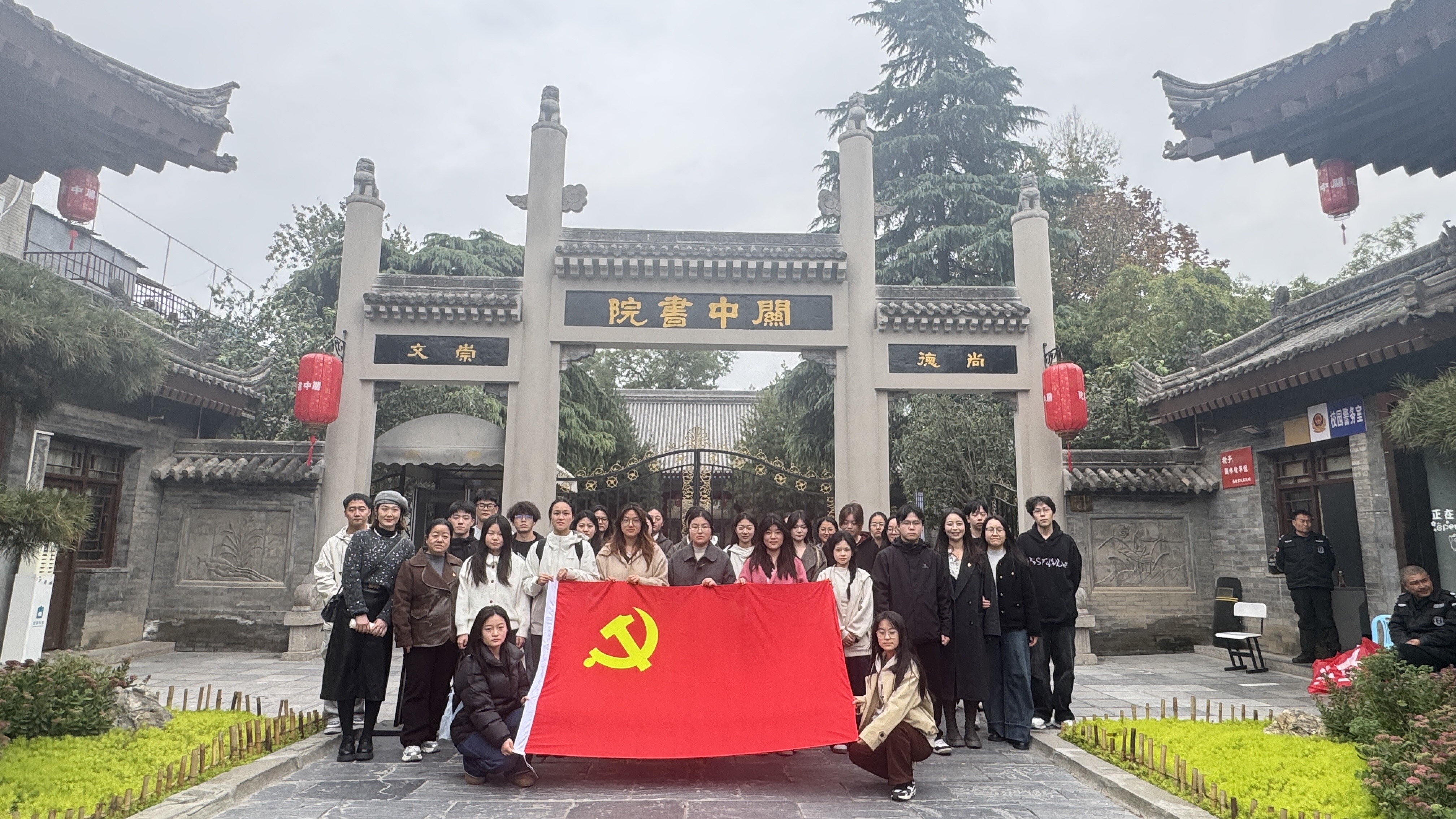 为深化党建引领学风建设,以文化传承赋能育人实效,11月6日下午,信息工程学院党总支组织员巩建萍、党建秘书张亚茹带队,携学生党支部书记任绒、韩蒙,带领 2023 级数据科学与大数据技术专业40余名学子赴关中书院开展主题党建活动。