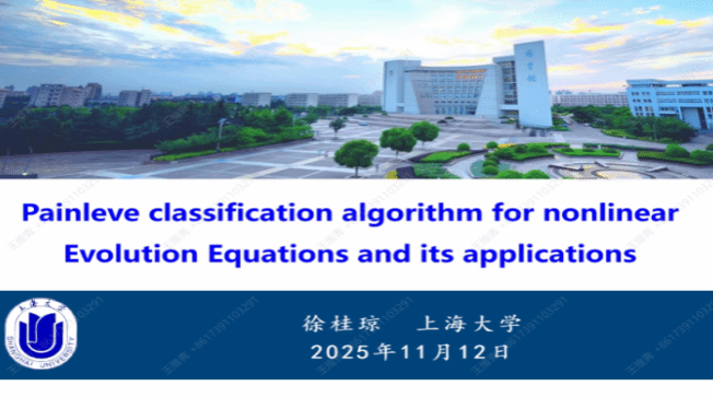 11月12日,信息工程学院邀请上海大学教授、博士生导师徐桂琼,为信工学院师生作了题为 “Painlevé Classification Algorithm for Nonlinear Evolution Equations and Its Applications” 的学术报告,报告由学院微分方程与机器学习创新团队负责人夏亚荣教授主持。