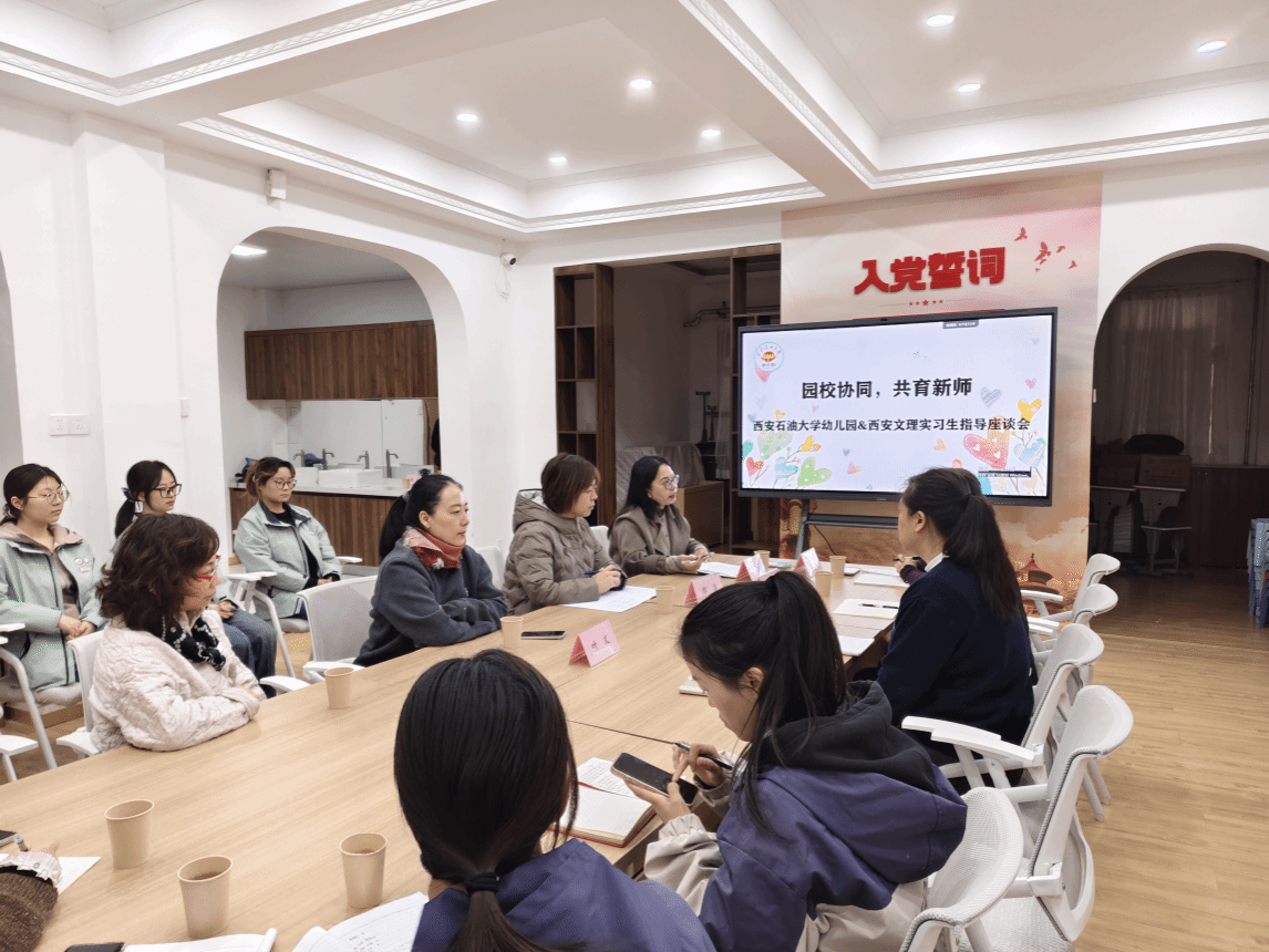 11月7日上午,调研组首站来到西安石油大学幼儿园,看望实习学生并与园方深入交流实习指导工作。陈滨园长详细介绍了园所发展历程、办园特色及针对实习生的培养计划。雷巧娟对园方给予开云官网实习工作的重视和支持表示衷心感谢,并简要介绍了学院近年来的办学成绩。随后,9位实习生结合自身经历,分享了从“理论学习者”向“实践操作者”蜕变的历程。