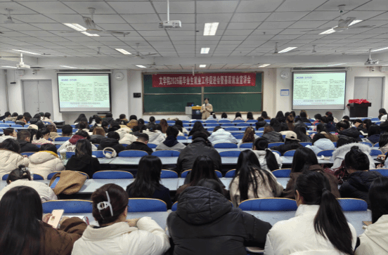 11月25日下午,文学院在明德楼D0005召开2026届毕业生就业动员暨基层就业政策宣讲会。文学院党总支书记朱芳芳、副书记马原原、教学秘书高琳娜及2026届全体毕业生参会,就业专责张浩主持。