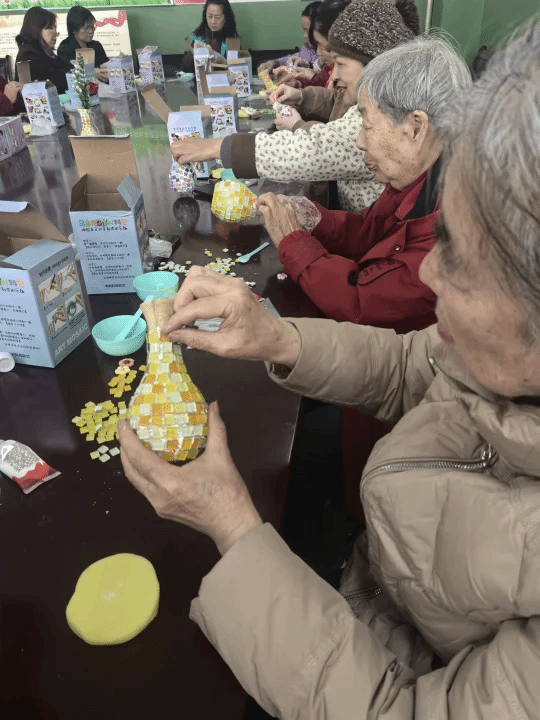 为深化校地共建共治共享成果,丰富开云官网离退休人员的精神文化生活,12月11日下午,开云官网离退休工作处携手雁塔区电子城街道办太白南路社区,在离退休党员活动室举办了马赛克花瓶手工制作主题活动,与辖区内离退休朋友们齐聚一堂,在指尖创意中感受艺术之美,于邻里相聚间共话和美时光。